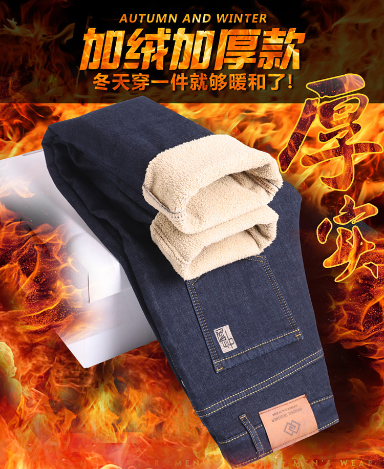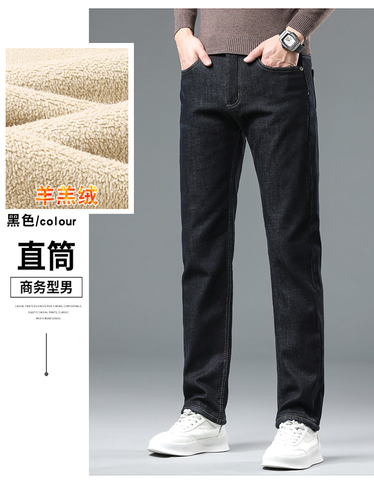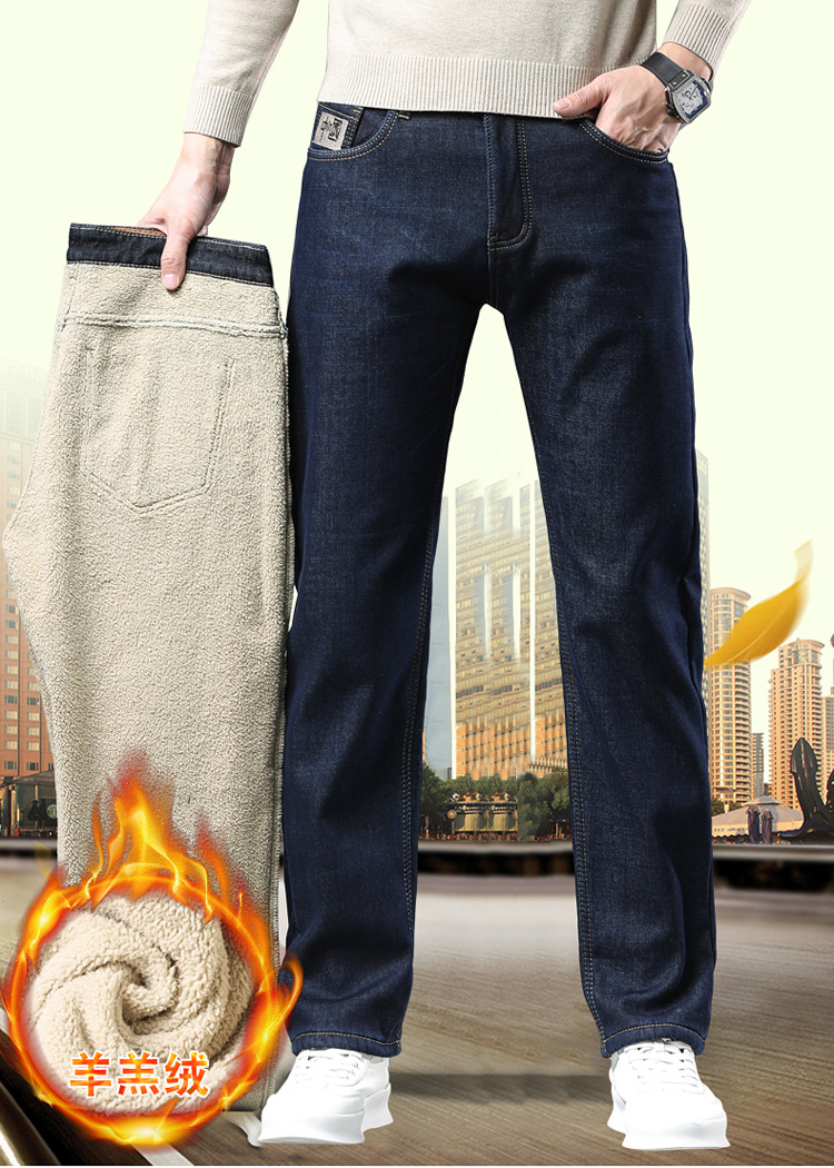 Xintang Lamb Velvet 기모 청바지 남성 가을 및 겨울 느슨한 스트레이트 두꺼운 따뜻한 캐주얼 남성 바지 도매스토어 가기