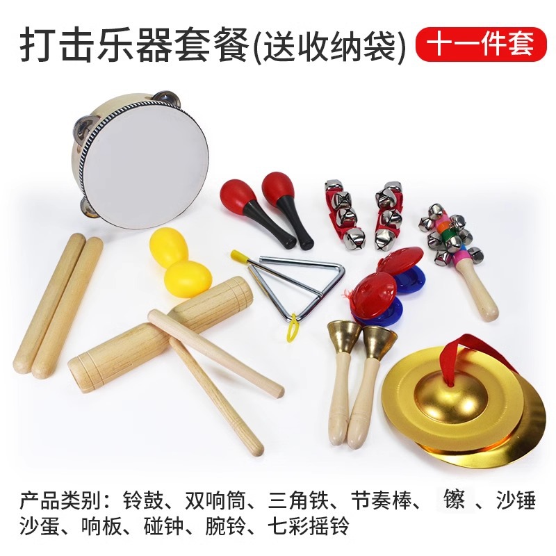 • 일반적으로 사용되는 11종 타악기 세트에는 보관 가방이 함께 제공됩니다.