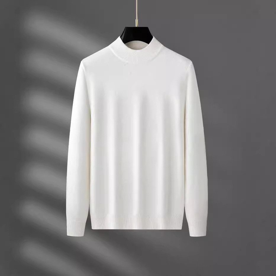 가벼운 성숙한 스타일 흰색 반 터틀넥 스웨터 남성용 단색 가을과 겨울베이스 셔츠 남성용 트렌디 한 브랜드 스웨터