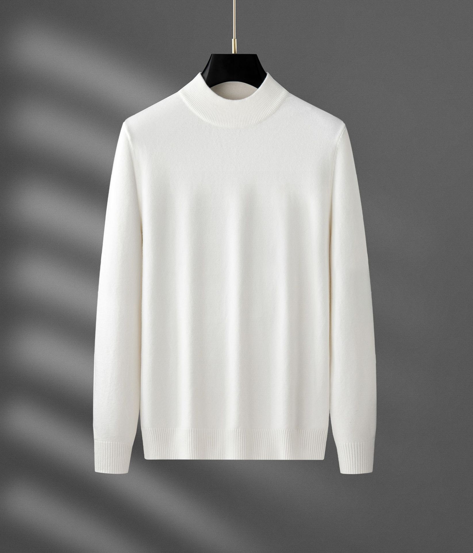 가벼운 성숙한 스타일 흰색 반 터틀넥 스웨터 남성용 단색 가을과 겨울베이스 셔츠 남성용 트렌디 한 브랜드 스웨터스토어 가기
