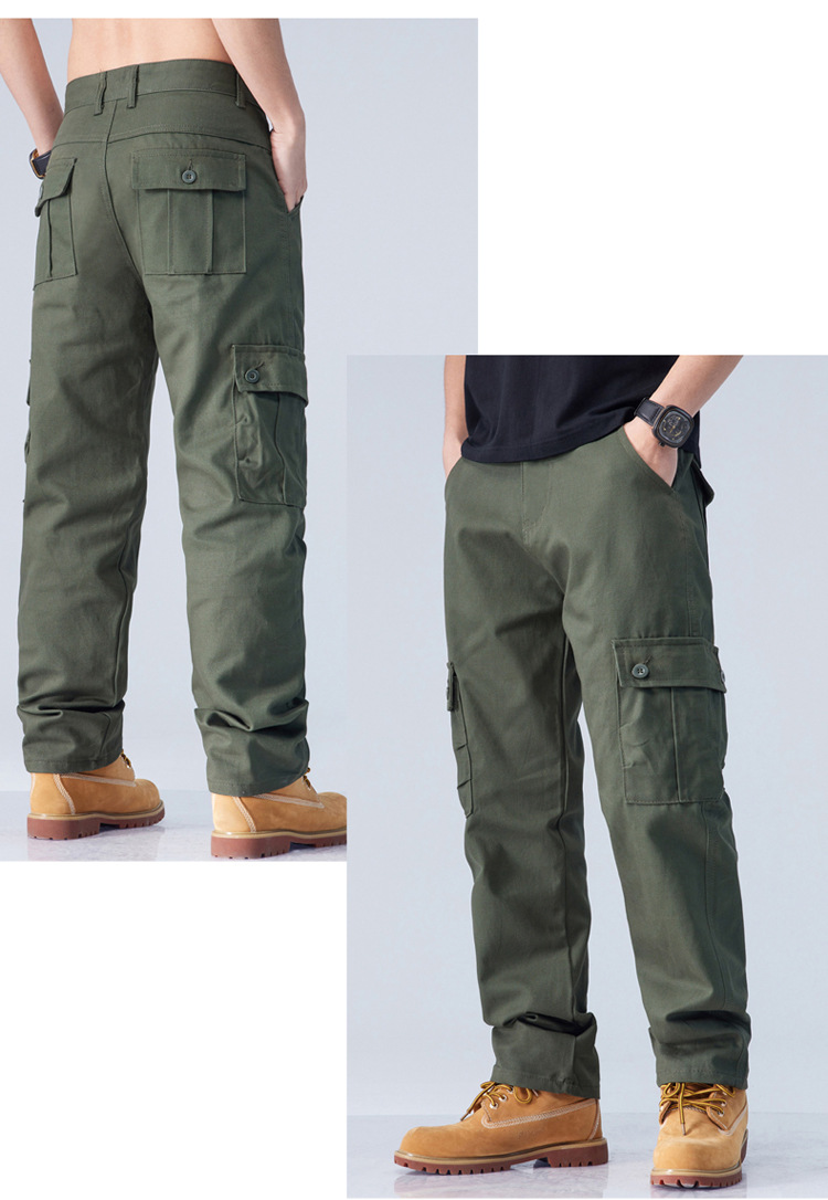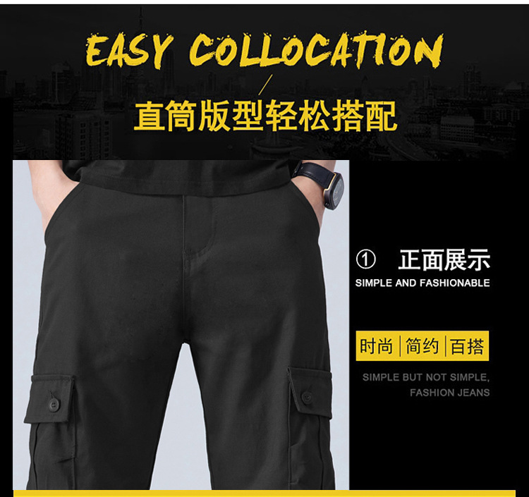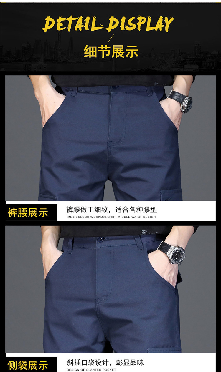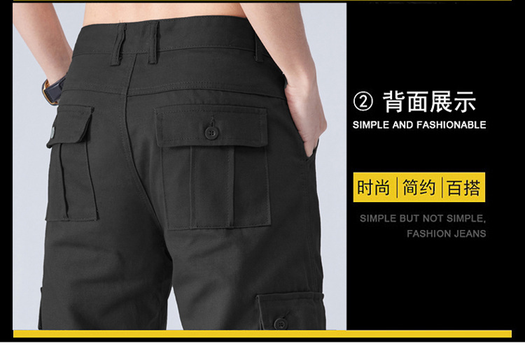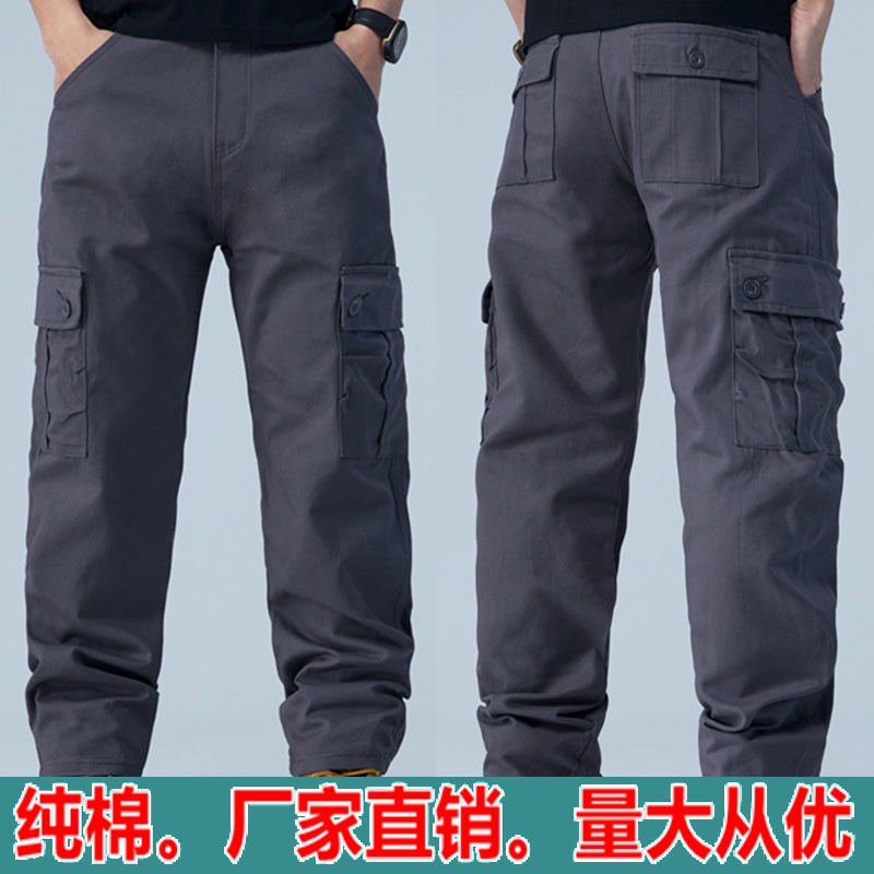 국경 간 AliExpress TEMU 아마존 대외 무역 순수 코튼 작업복 남성 스트레이트 캐주얼 바지 남성 멀티 포켓 바지