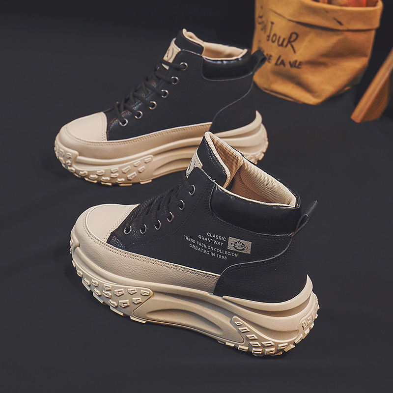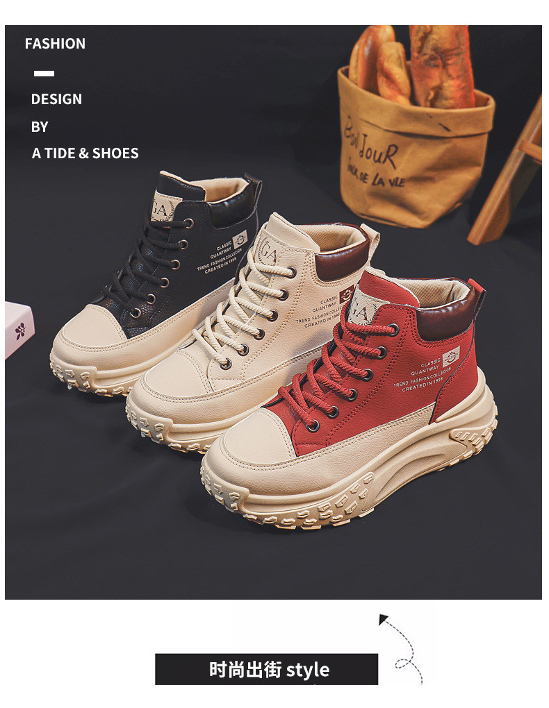 두꺼운 밑창 하이 탑 신발 여성의 2024 가을과 겨울 새로운 두꺼운 올 매치 스포츠 캐주얼 스케이트 신발 학생 유행 신발 HY933