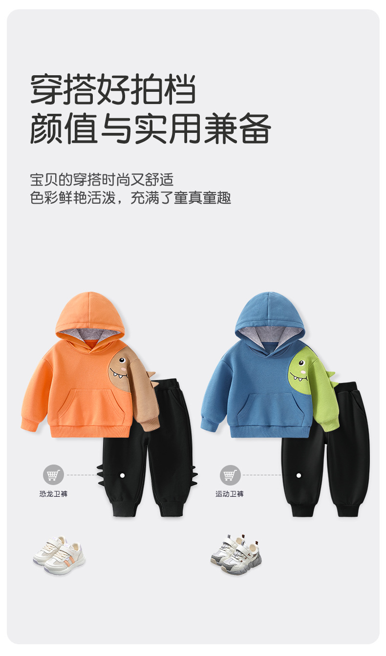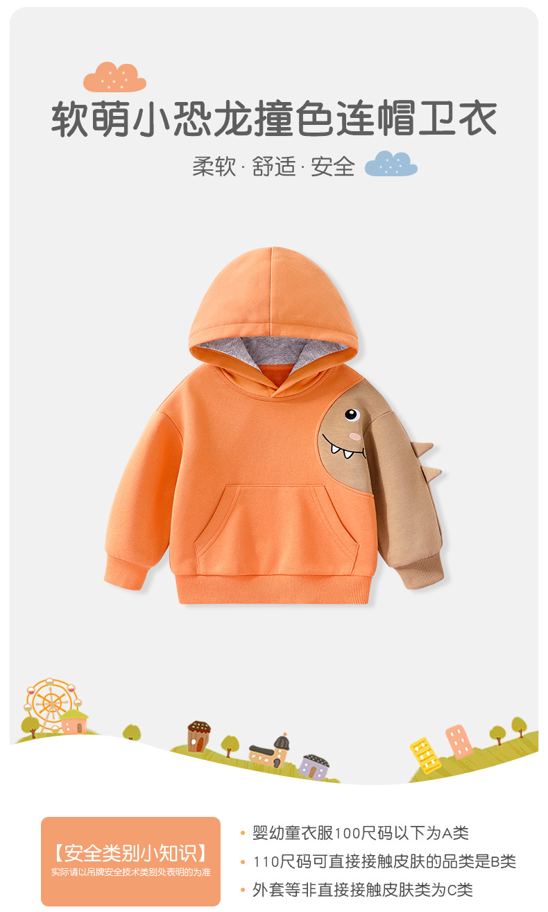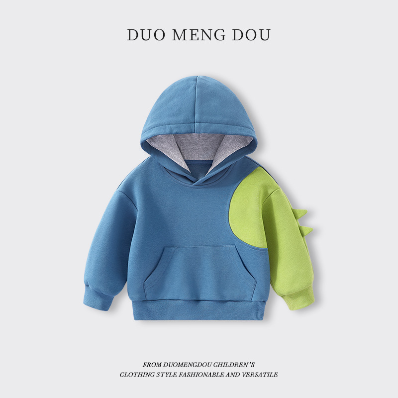 소년 운동복 봄과 가을 어린이 아기 명암 후드탑 2024 새로운 어린이 작은 공룡 재미있는 가을 옷스토어 가기