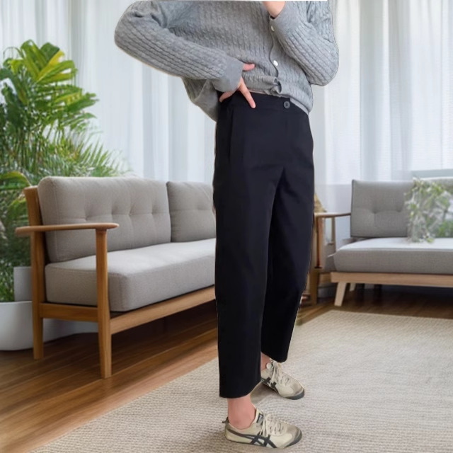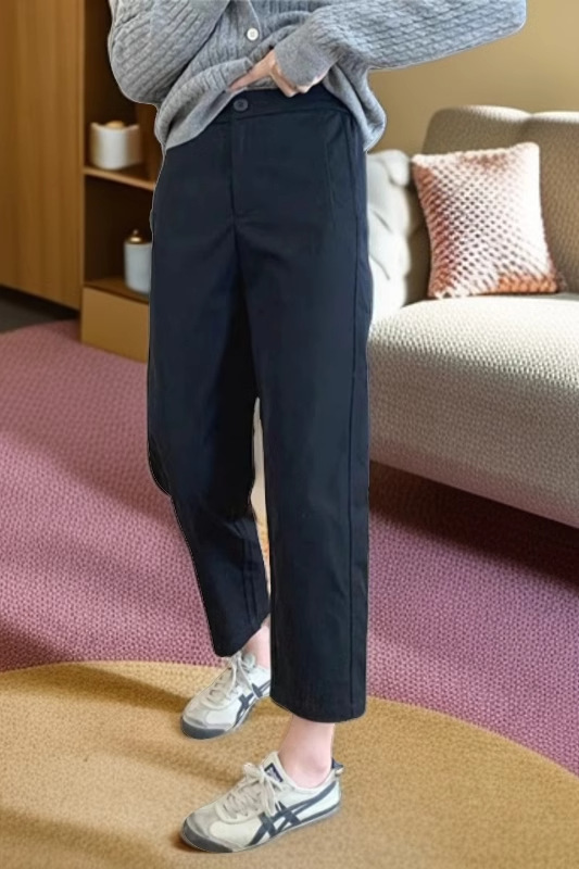 검은 캐주얼 바지 여성의 가을 새로운 배 모양의 몸 플러스 사이즈 슬리밍 높은 허리 짧은 9 점 할란 스트레이트 바지스토어 가기