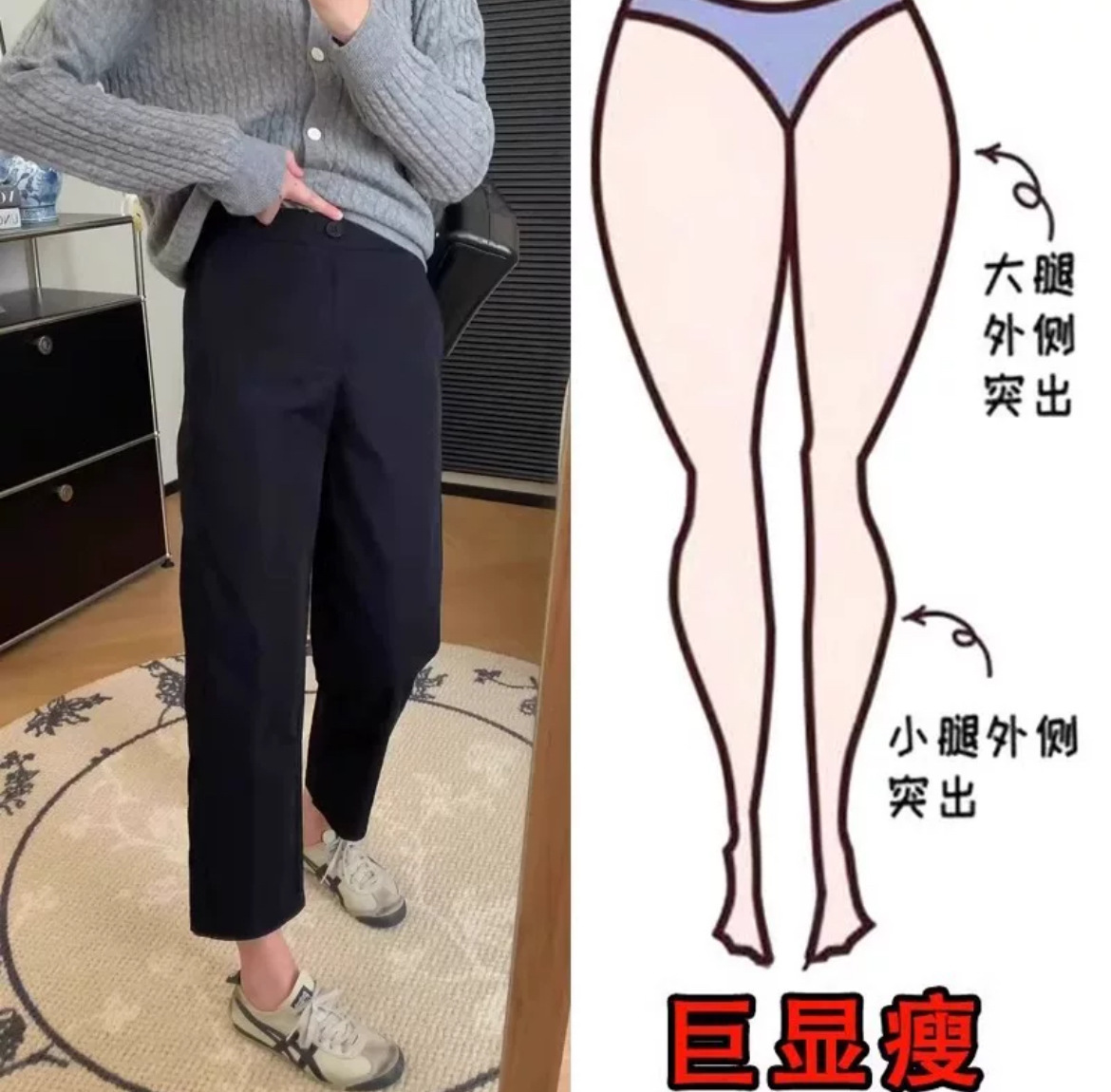 黑色休闲裤女秋季新款梨形身材大码显瘦高腰小个子九分哈伦直筒裤
