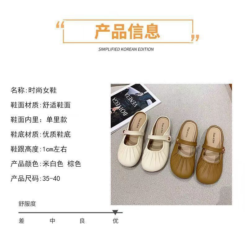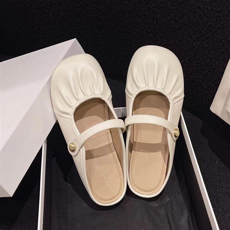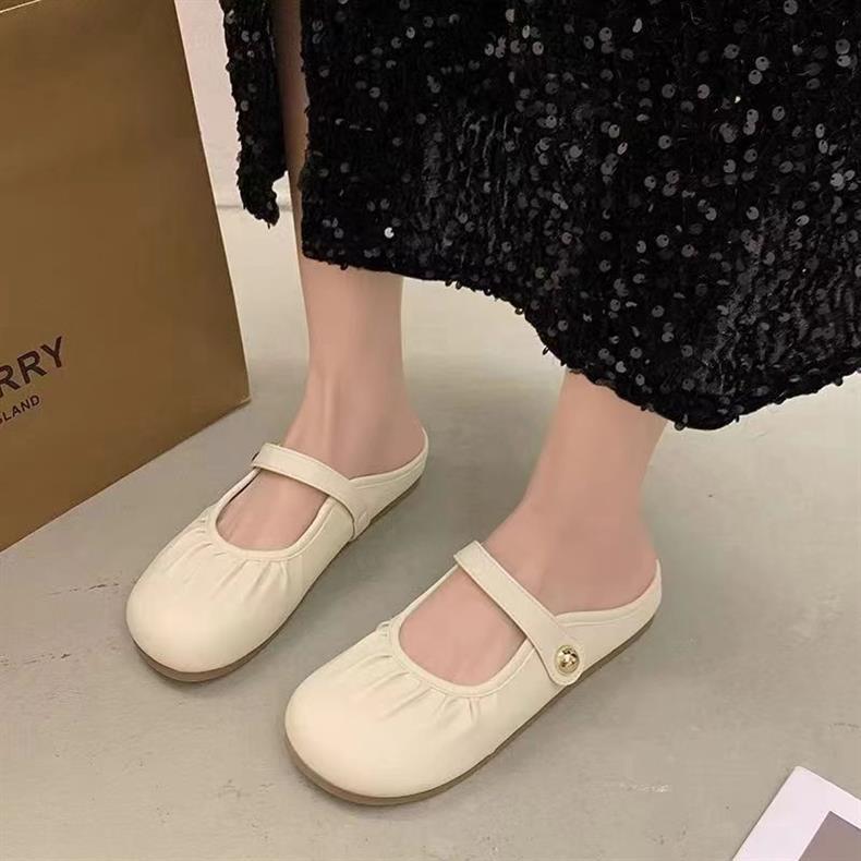 Baotou Pleated Half Slippers 2024 봄과 여름 새로운 평면 의상 캐주얼 휴가 슬립 온 플랫 게으른 신발스토어 가기