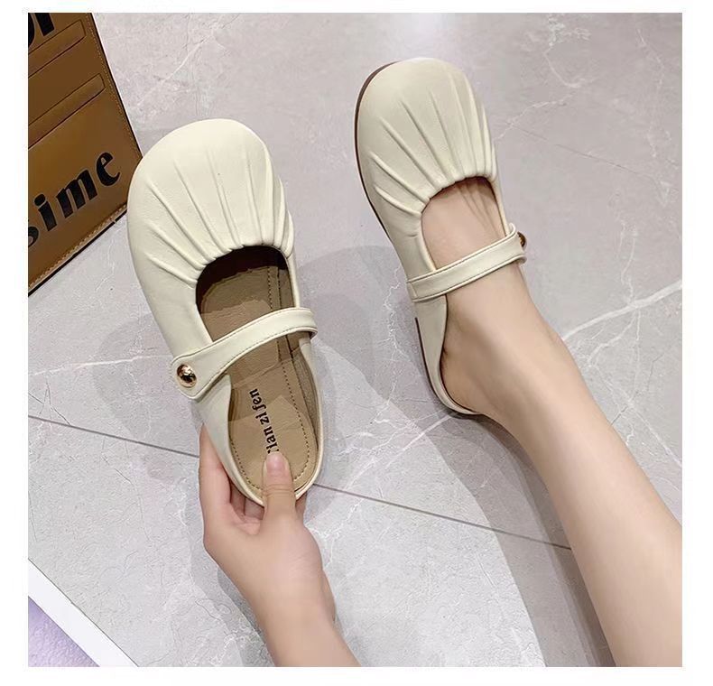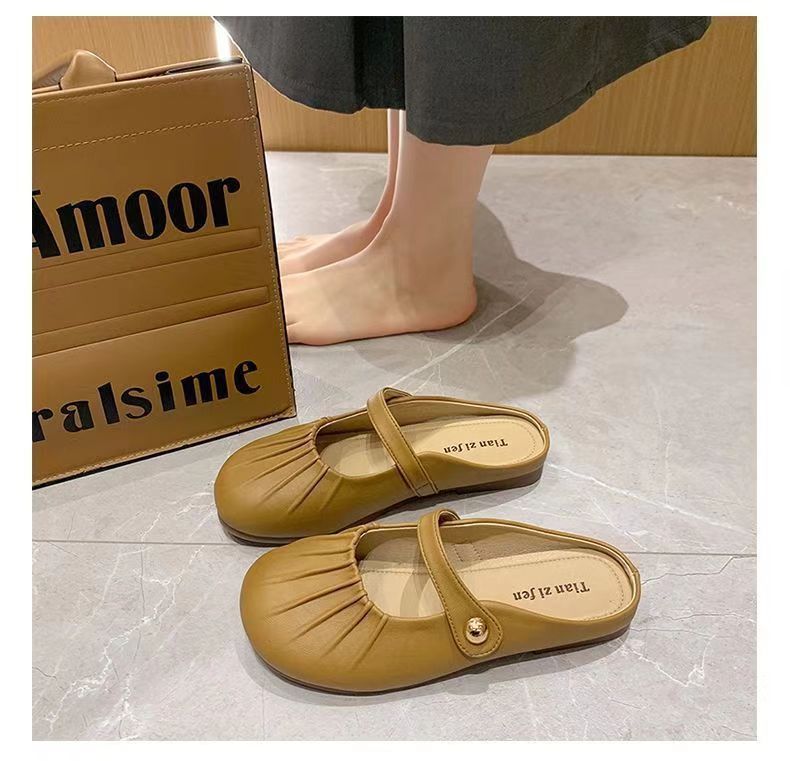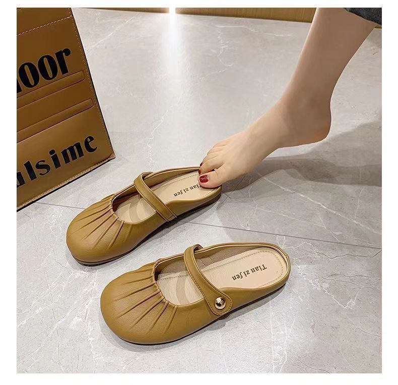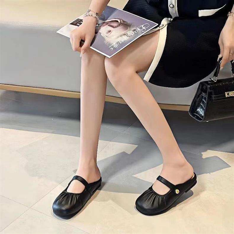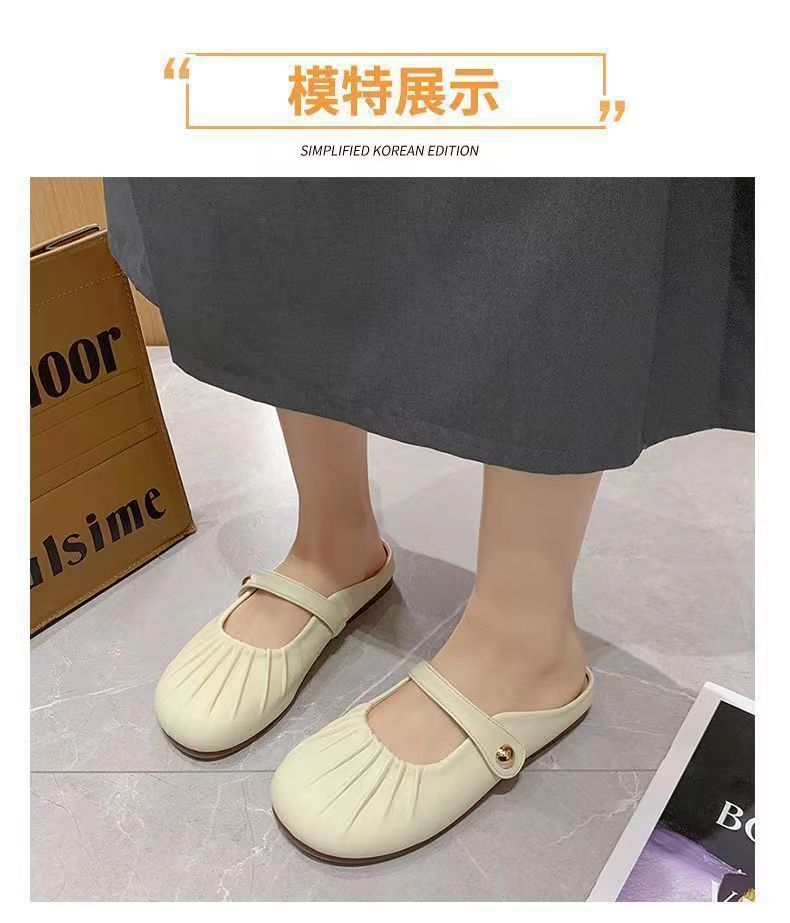 Baotou Pleated Half Slippers 2024 봄과 여름 새로운 평면 의상 캐주얼 휴가 슬립 온 플랫 게으른 신발