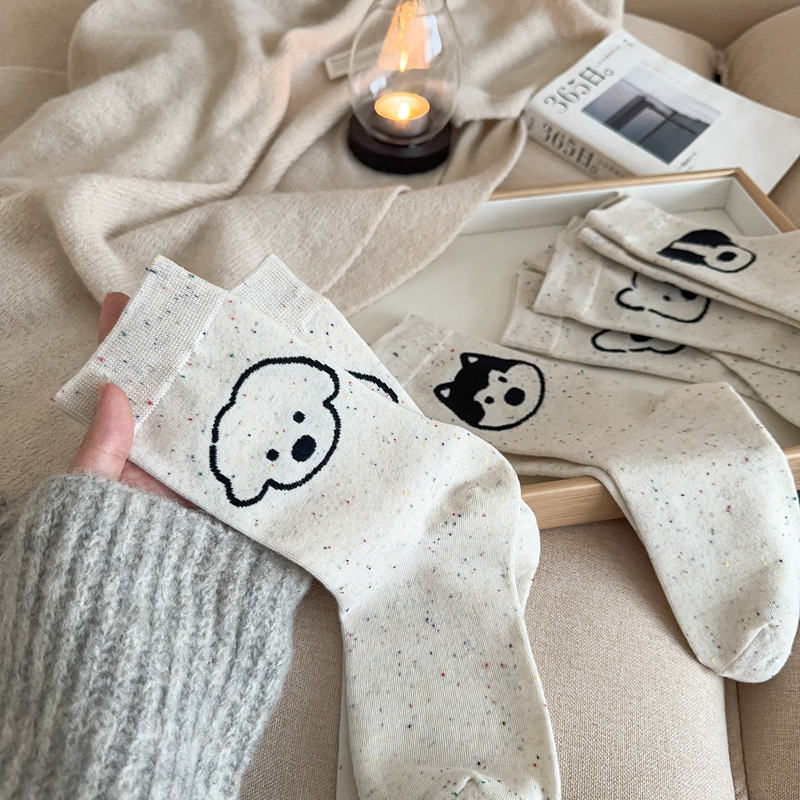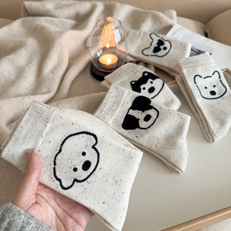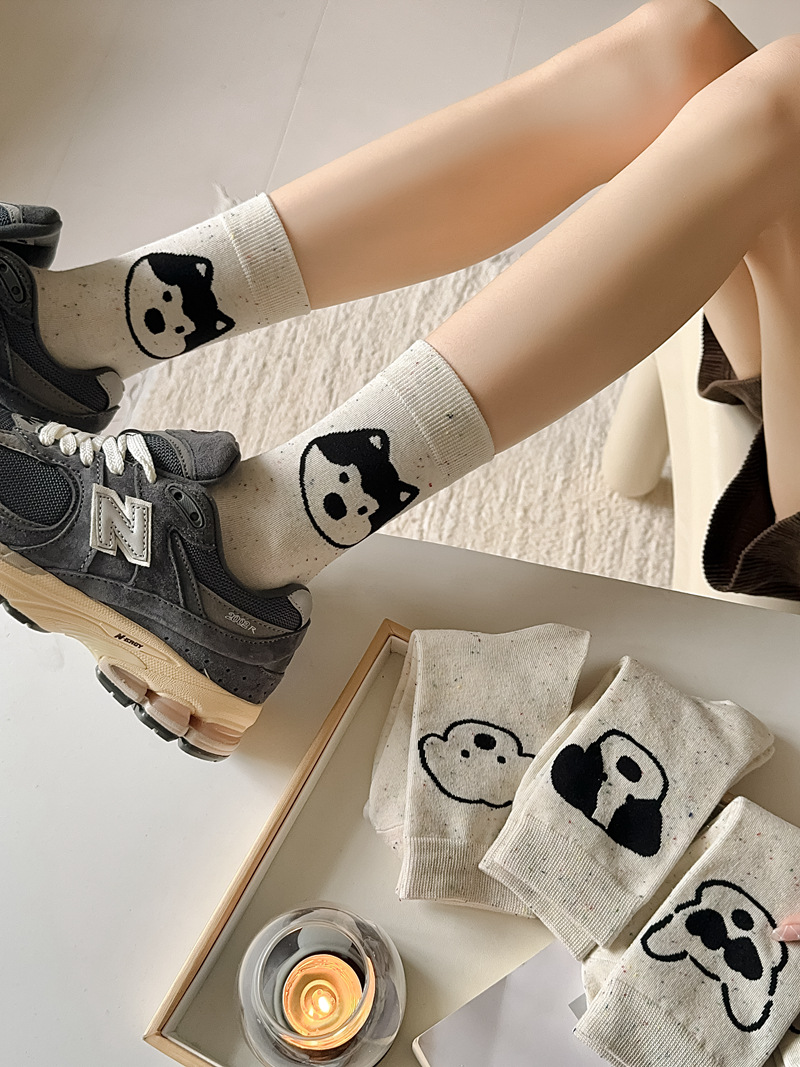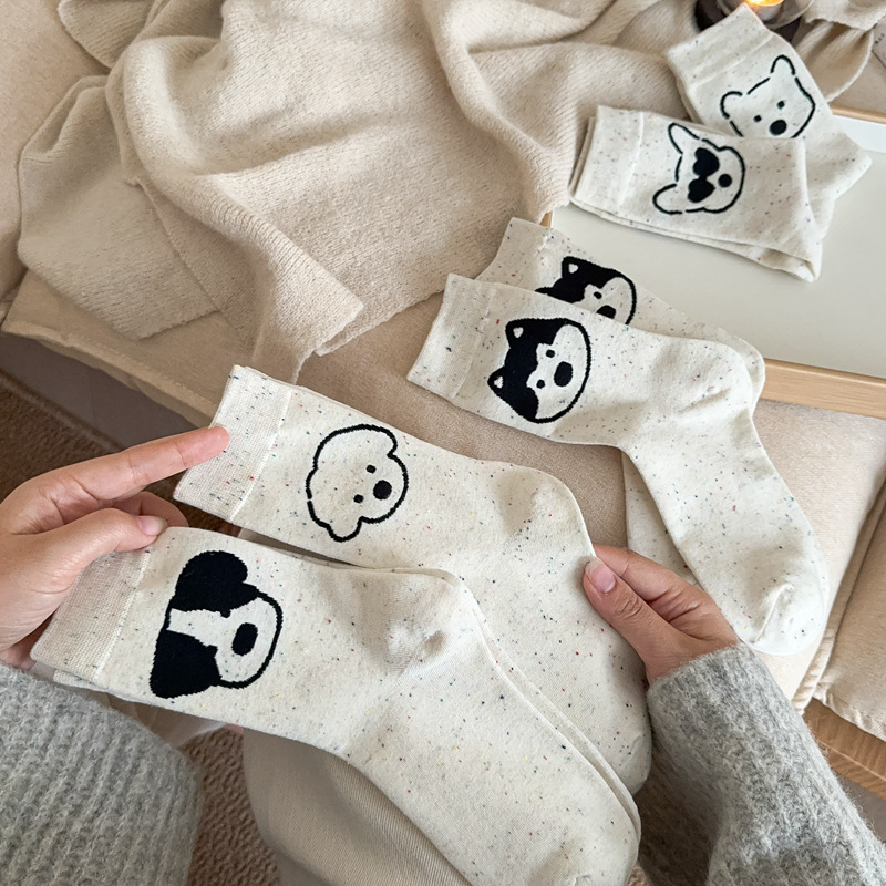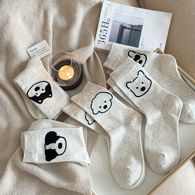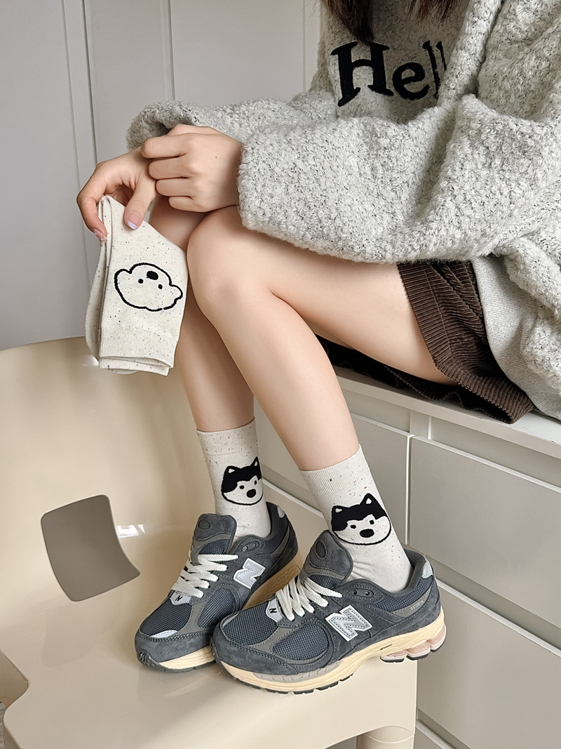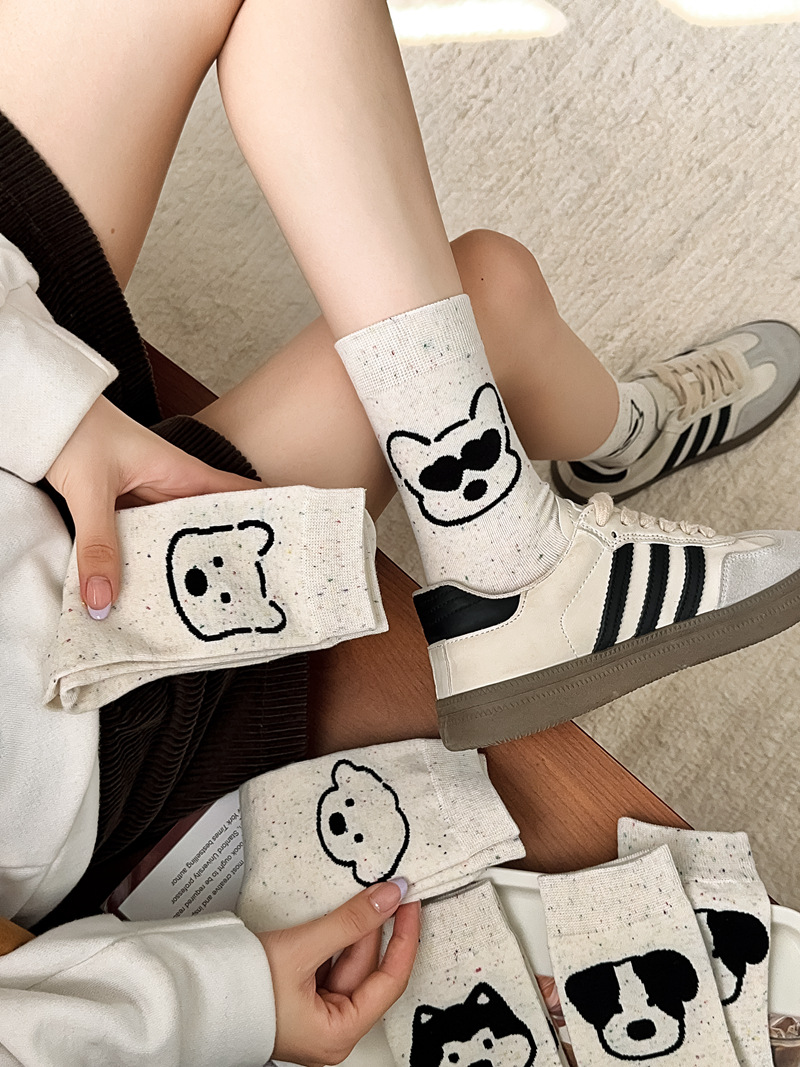 귀여운 강아지 양말 여성용 Orn 원사 중간 길이 양말 봄과 가을 코튼 양말 Ins 유행 일본 스타일 만화 스택 양말 여성용 양말스토어 가기