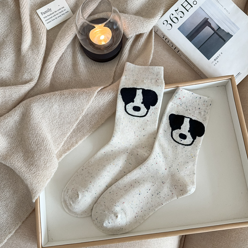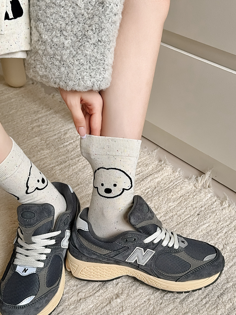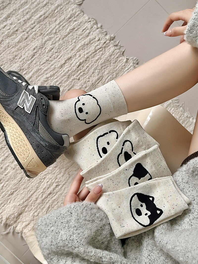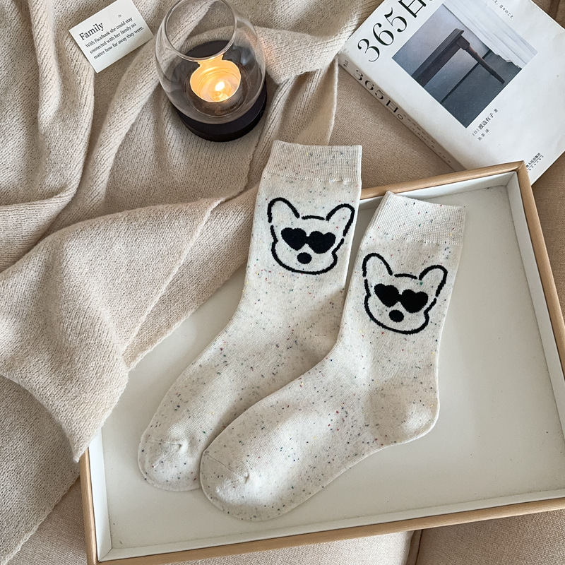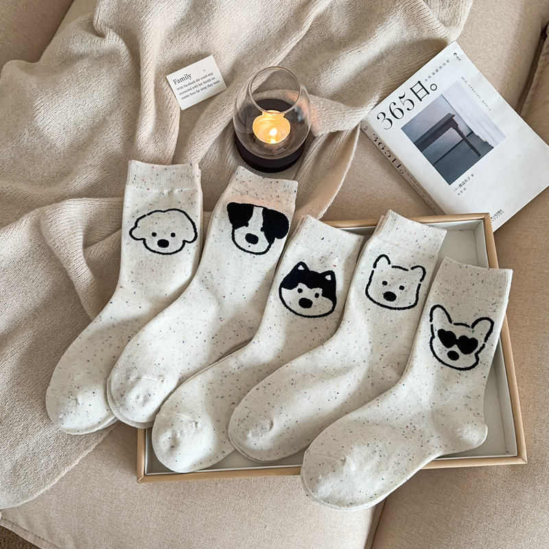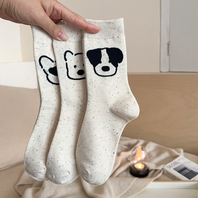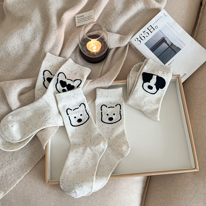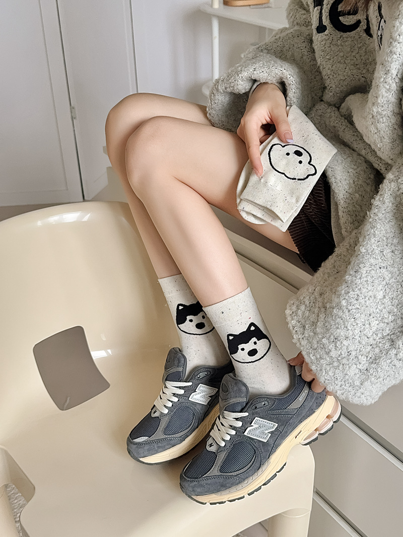 귀여운 강아지 양말 여성용 Orn 원사 중간 길이 양말 봄과 가을 코튼 양말 Ins 유행 일본 스타일 만화 스택 양말 여성용 양말스토어 가기