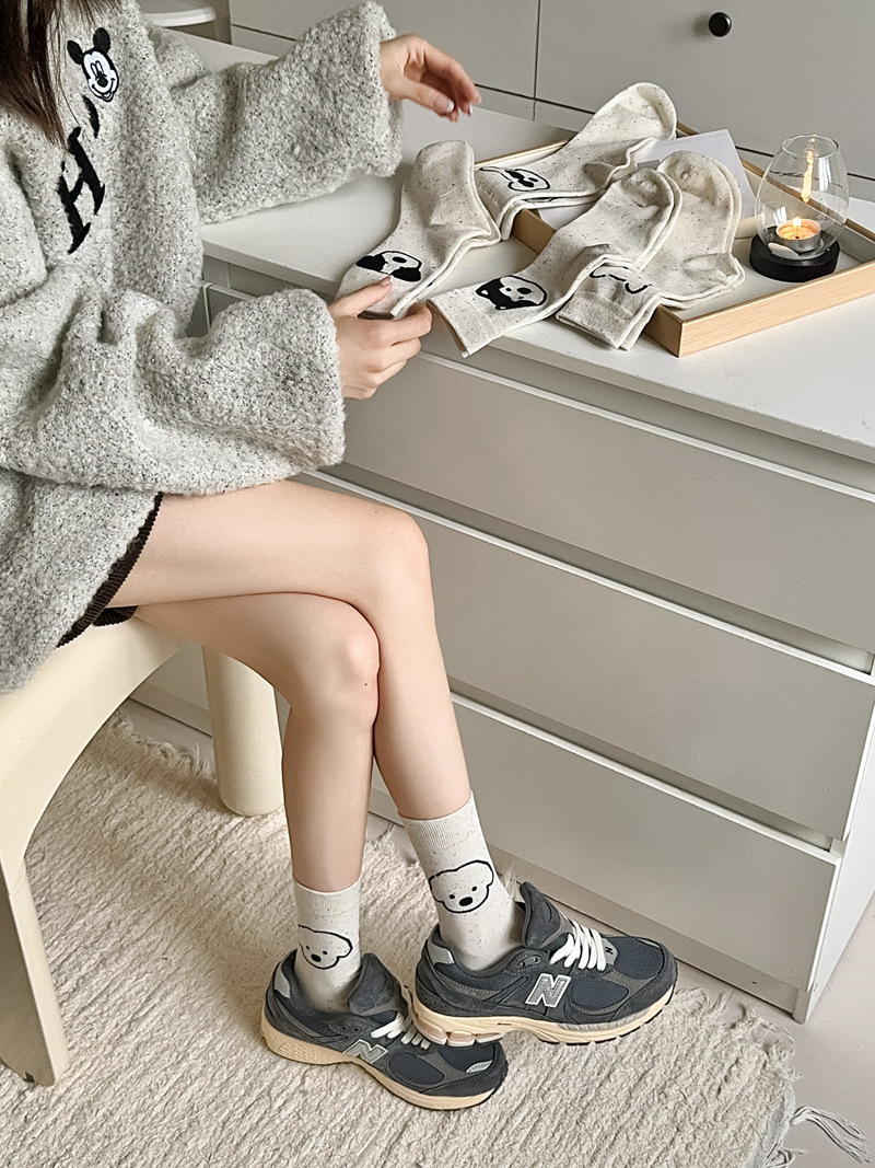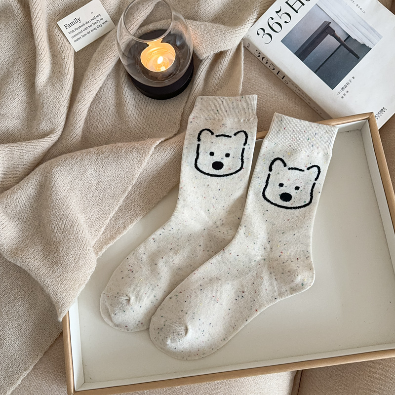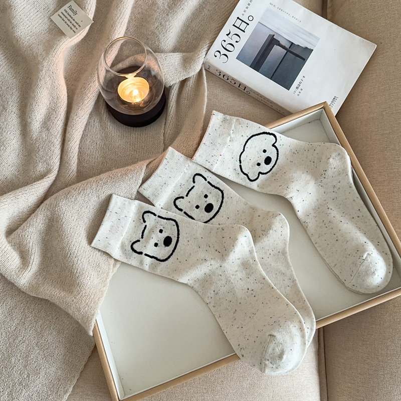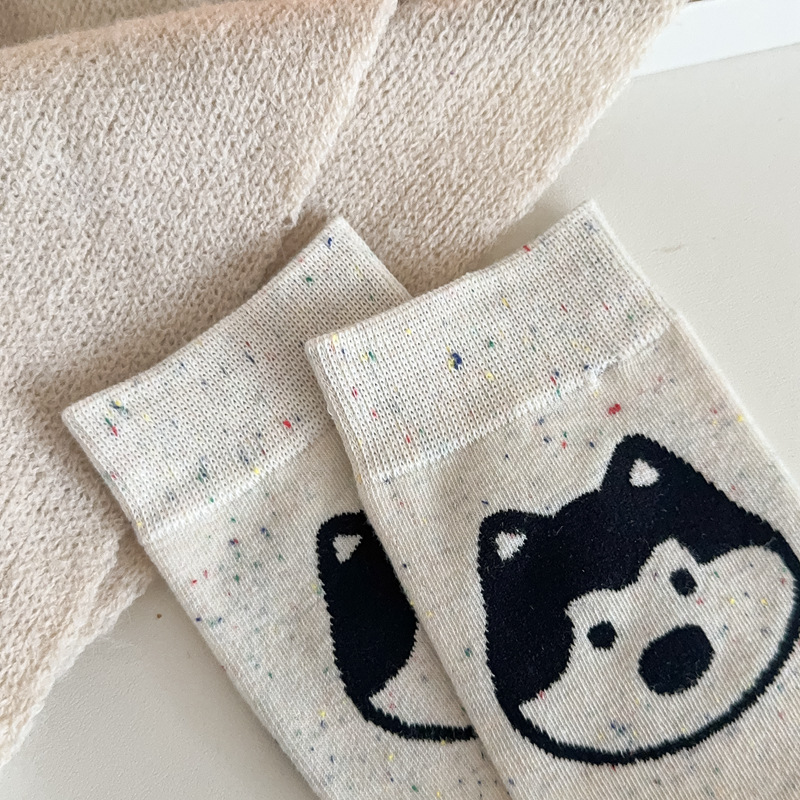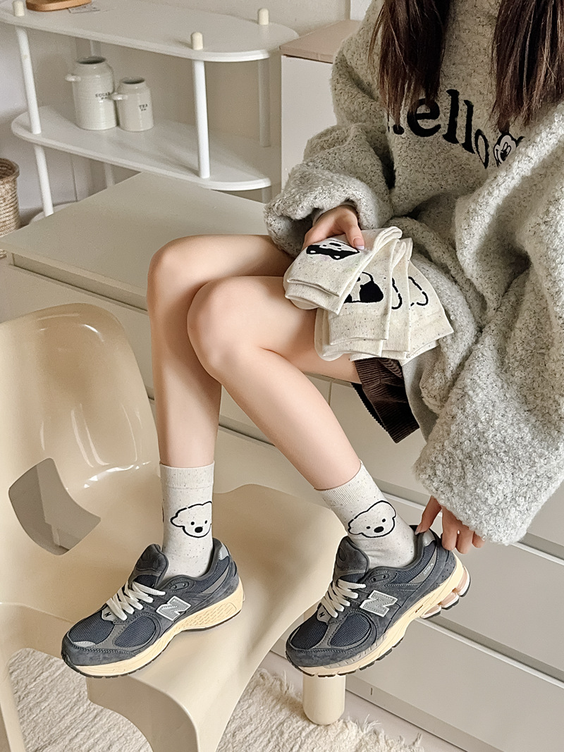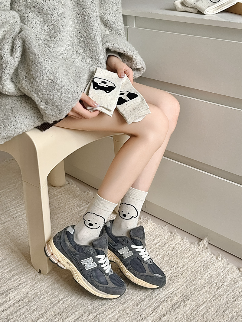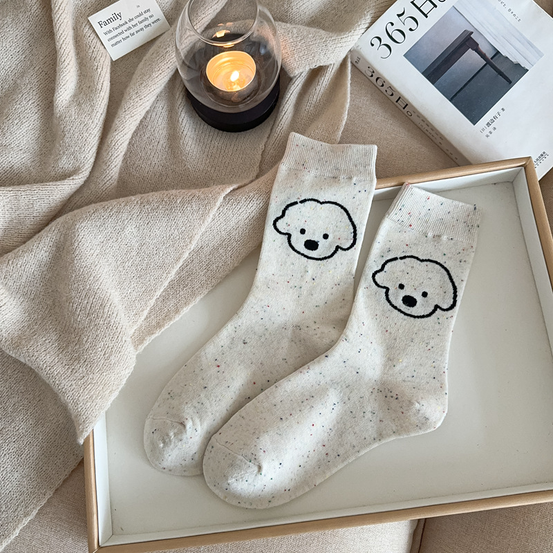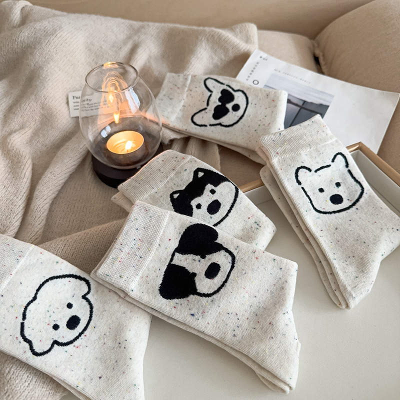 귀여운 강아지 양말 여성용 Orn 원사 중간 길이 양말 봄과 가을 코튼 양말 Ins 유행 일본 스타일 만화 스택 양말 여성용 양말스토어 가기