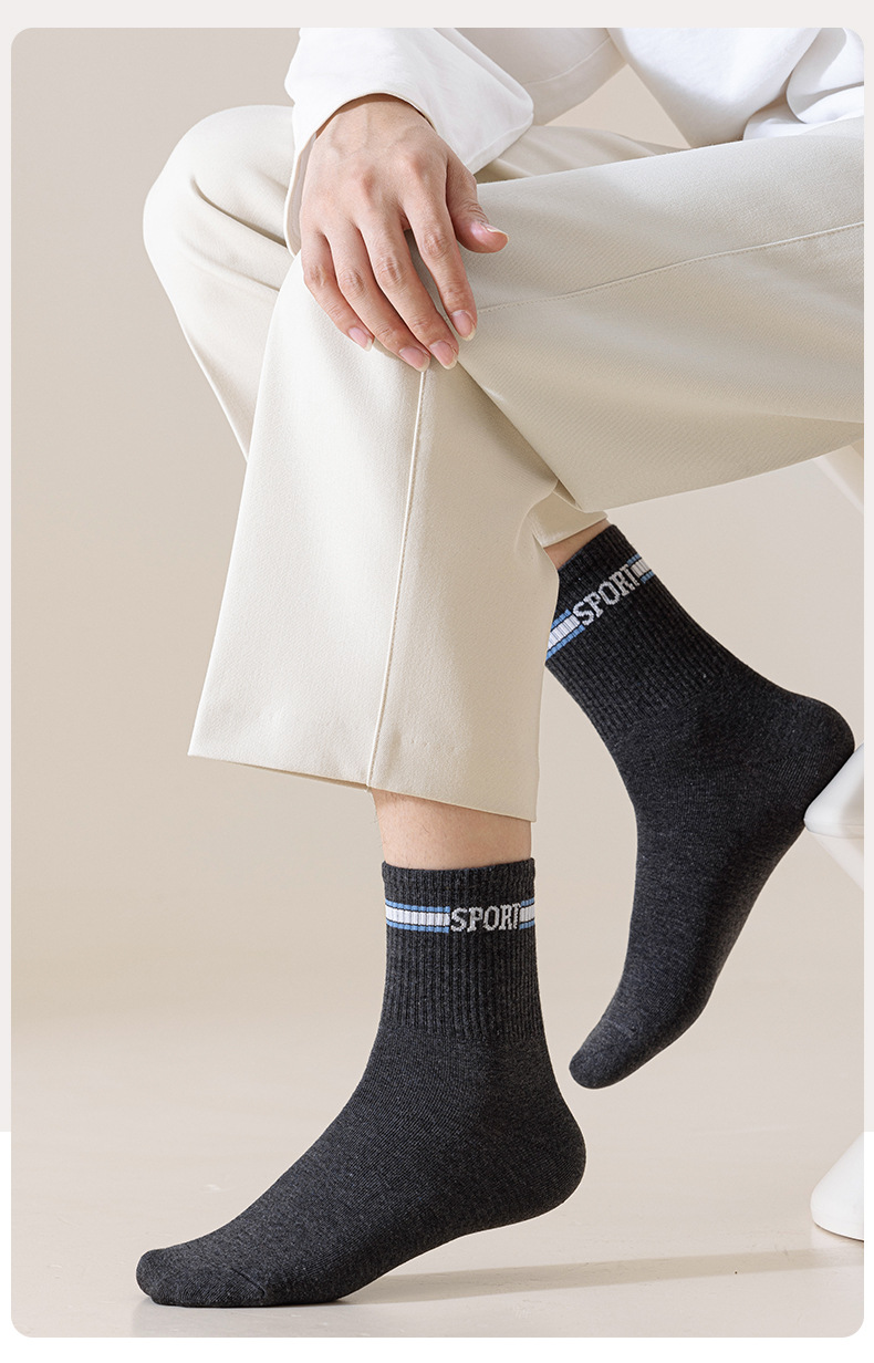 새로운 가을 및 겨울 양말 남성 중간 배럴 스포츠 캐주얼 코튼 양말 땀 흡수성 통기성 트렌디 한 긴 배럴 비즈니스 남성 블루 볼 양말