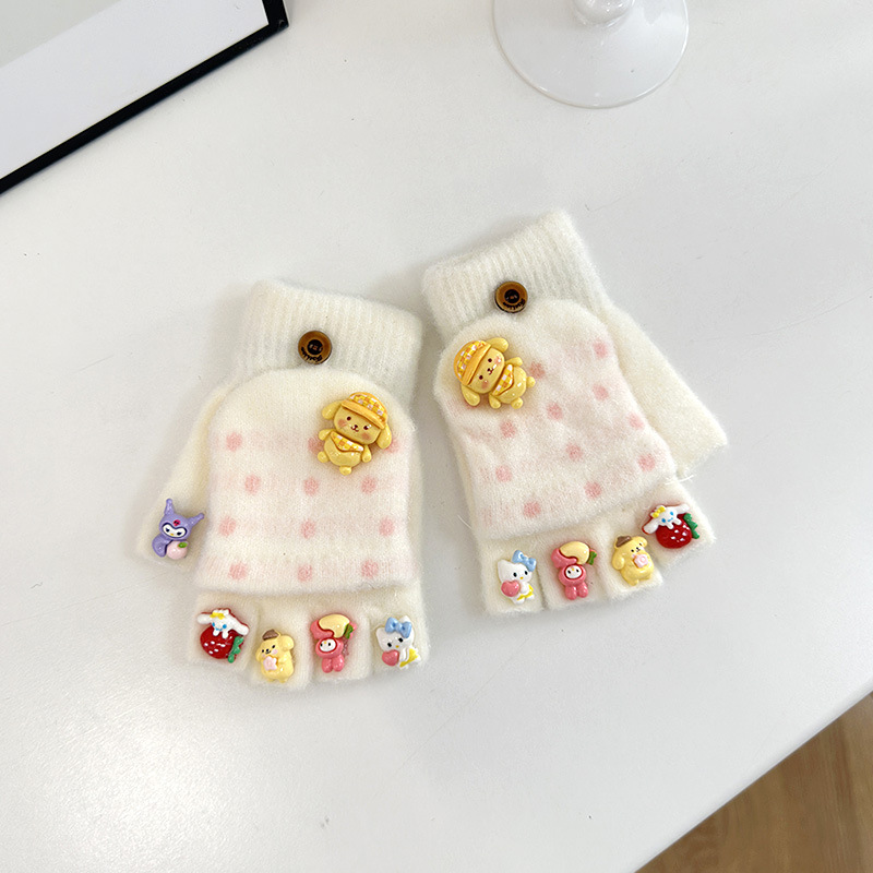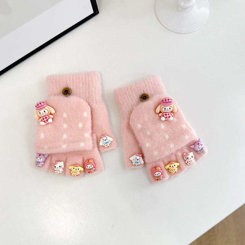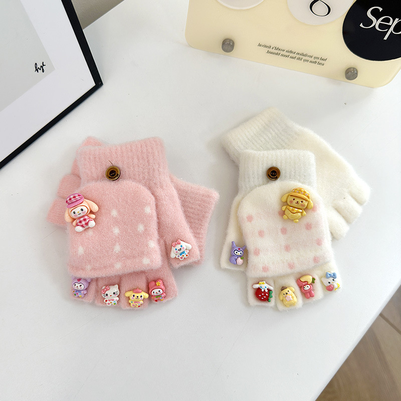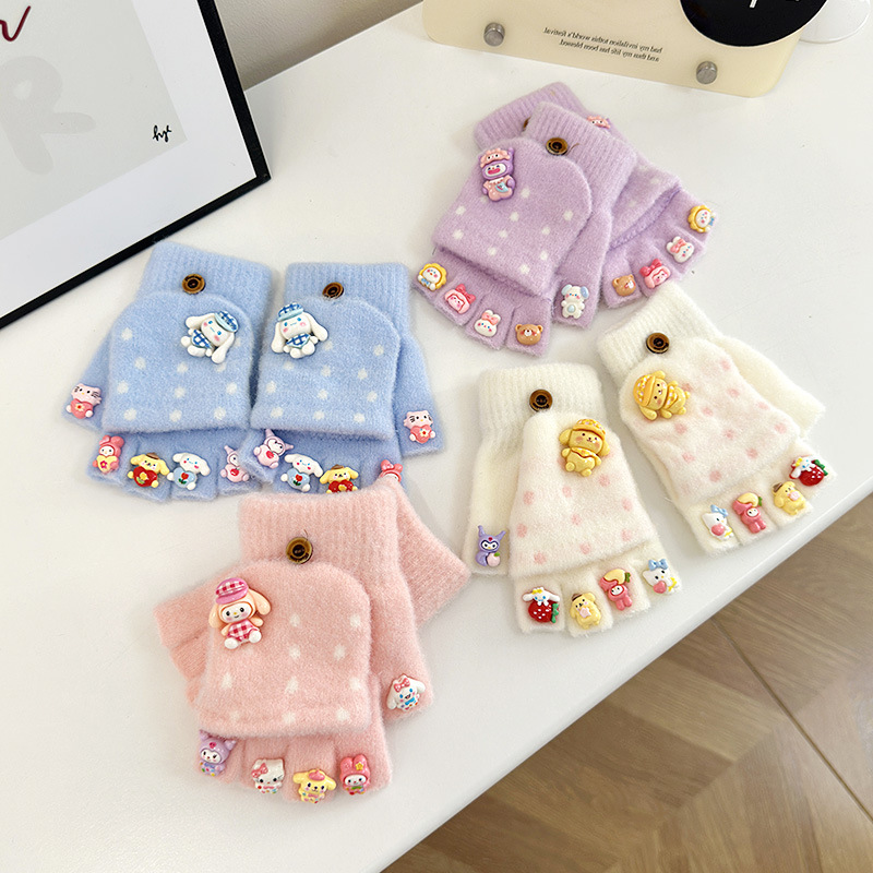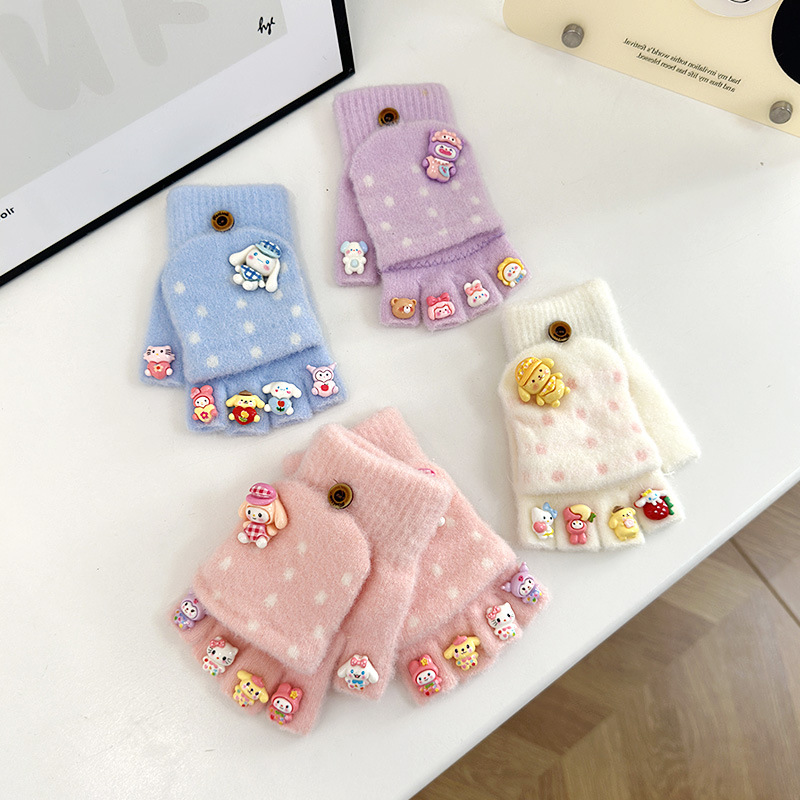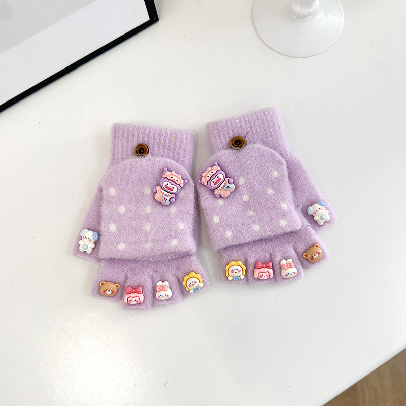 어린이 장갑 가을과 겨울 만화 따뜻한 귀여운 어린 소녀 다섯 손가락 뒤집기 아기 방청 학생 글러브 쓰기