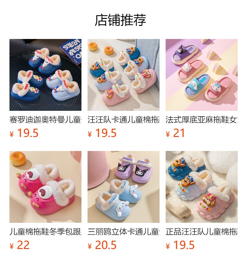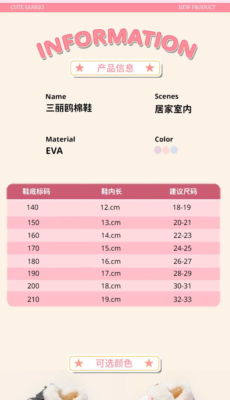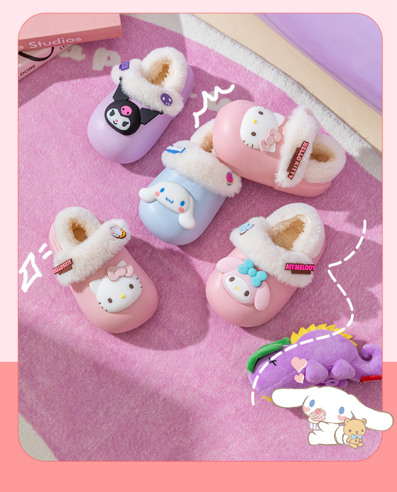 산리오 어린이 가방 면화 겨울 새 기모 따뜻한 미끄럼 방지 홈 실내 및 실외 착용 탈착식 면화 걸레스토어 가기