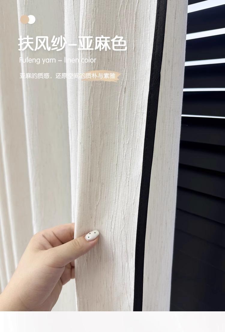 푸펑 원사 리넨 코튼 및 린넨 텍스처 편안한 통기성 분위기 원사 커튼 거실 발코니 침실 커튼스토어 가기
