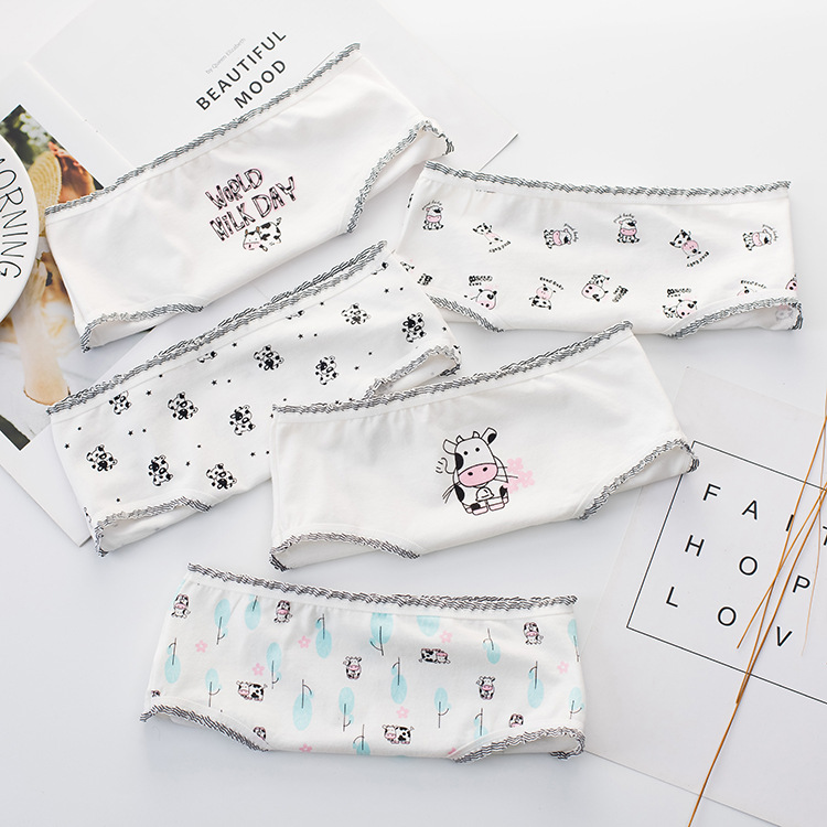 INS 스타일 어린이 귀여운 순면 소 캐릭터 여자아이 팬티 순면 통기성 삼각팬티 해외배송 유아동용스토어 가기