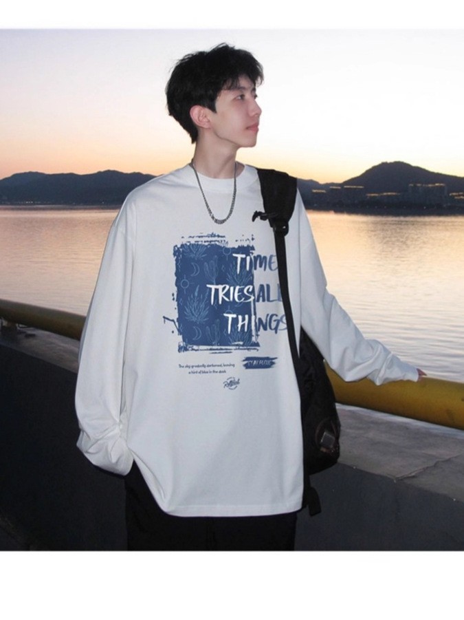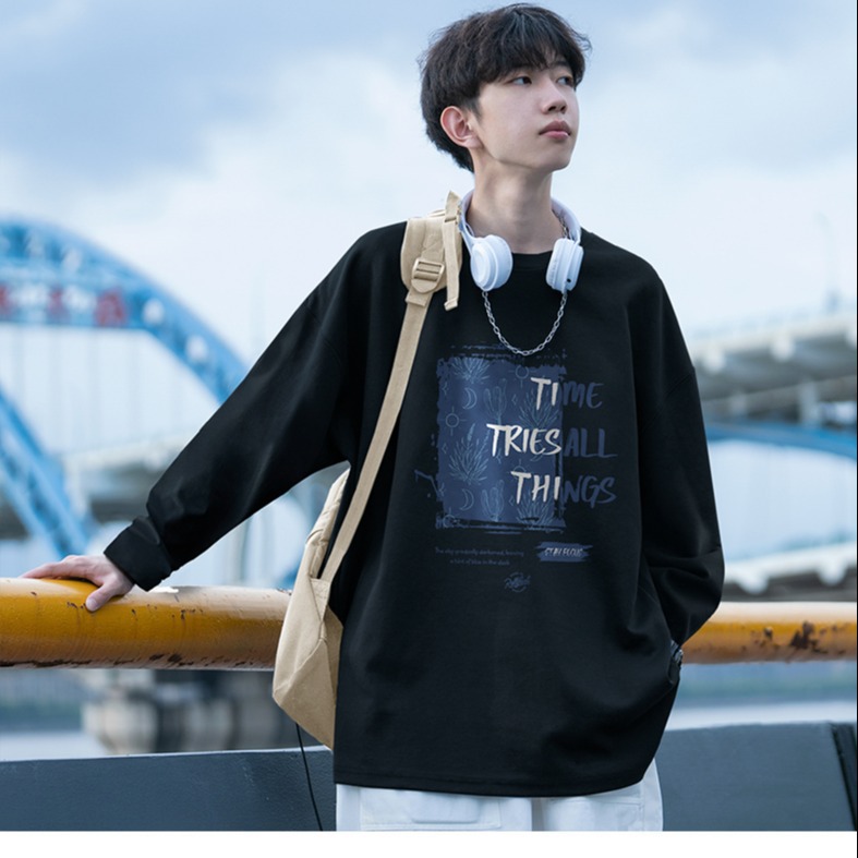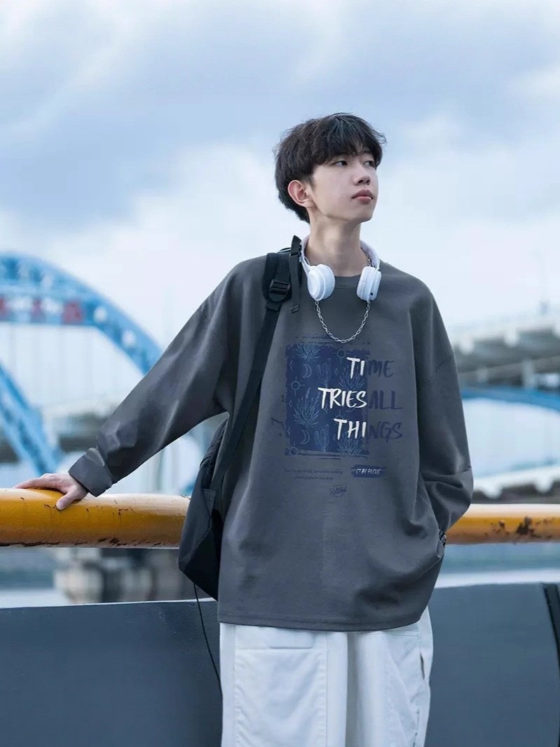 2025 남성 긴팔 티셔츠 가을 베이직 청소년 긴팔 티셔츠 트렌디 브랜드 홍콩 스타일 티셔츠 루즈핏 트렌디 남성복스토어 가기