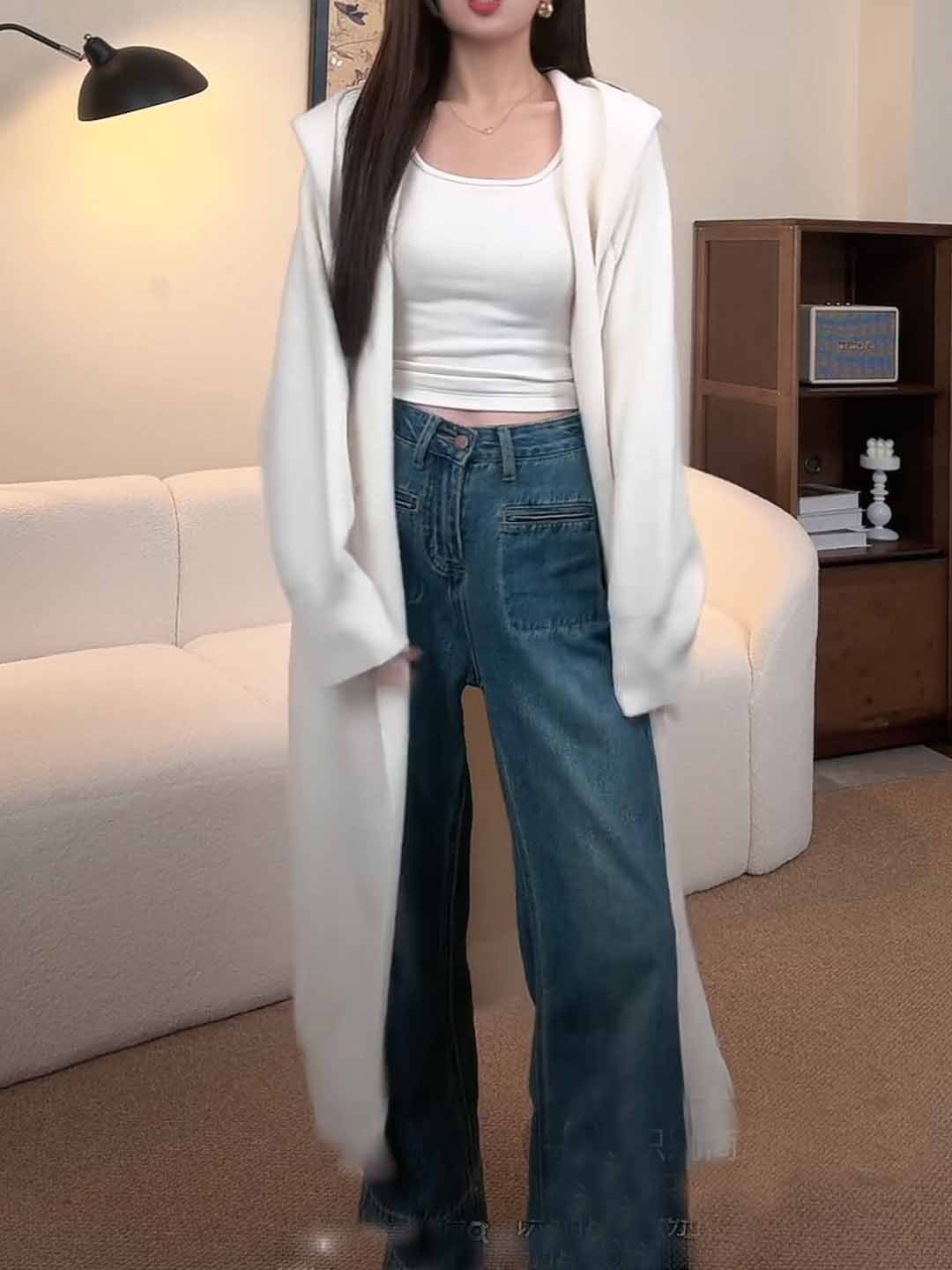 가을과 겨울 새로운 후드 스웨터 카디건 여성의 중간 길이 게으른 스타일 하이 레벨 박쥐 슬리브 니트 코트 두꺼운 코트