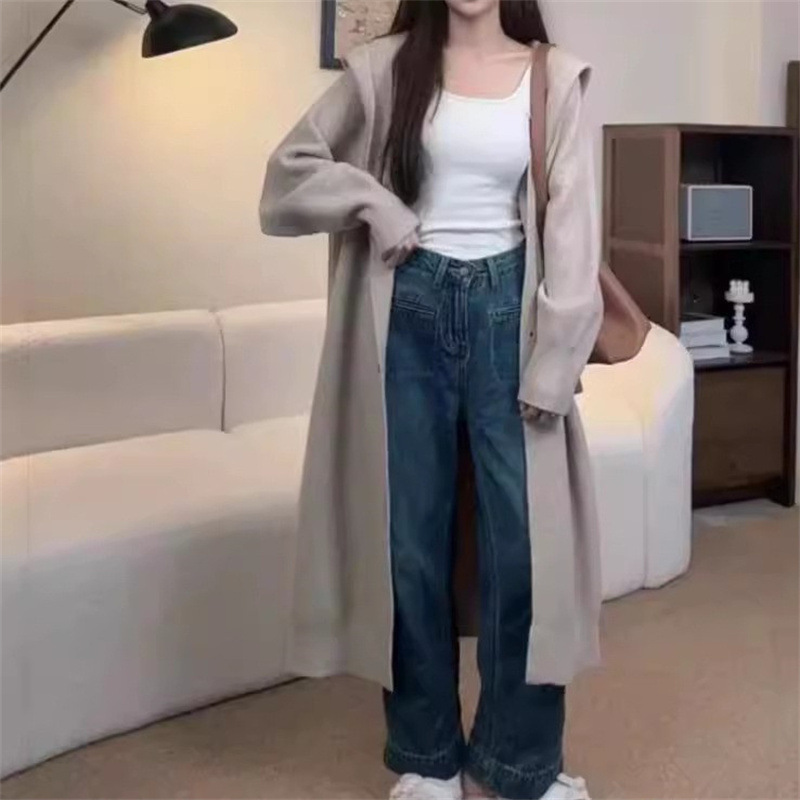 가을과 겨울 새로운 후드 스웨터 카디건 여성의 중간 길이 게으른 스타일 하이 레벨 박쥐 슬리브 니트 코트 두꺼운 코트스토어 가기