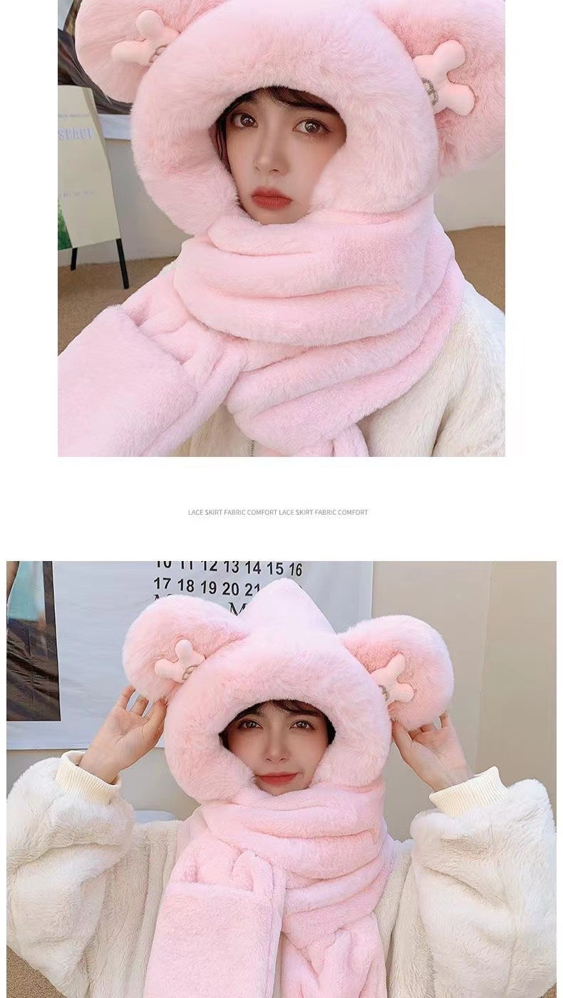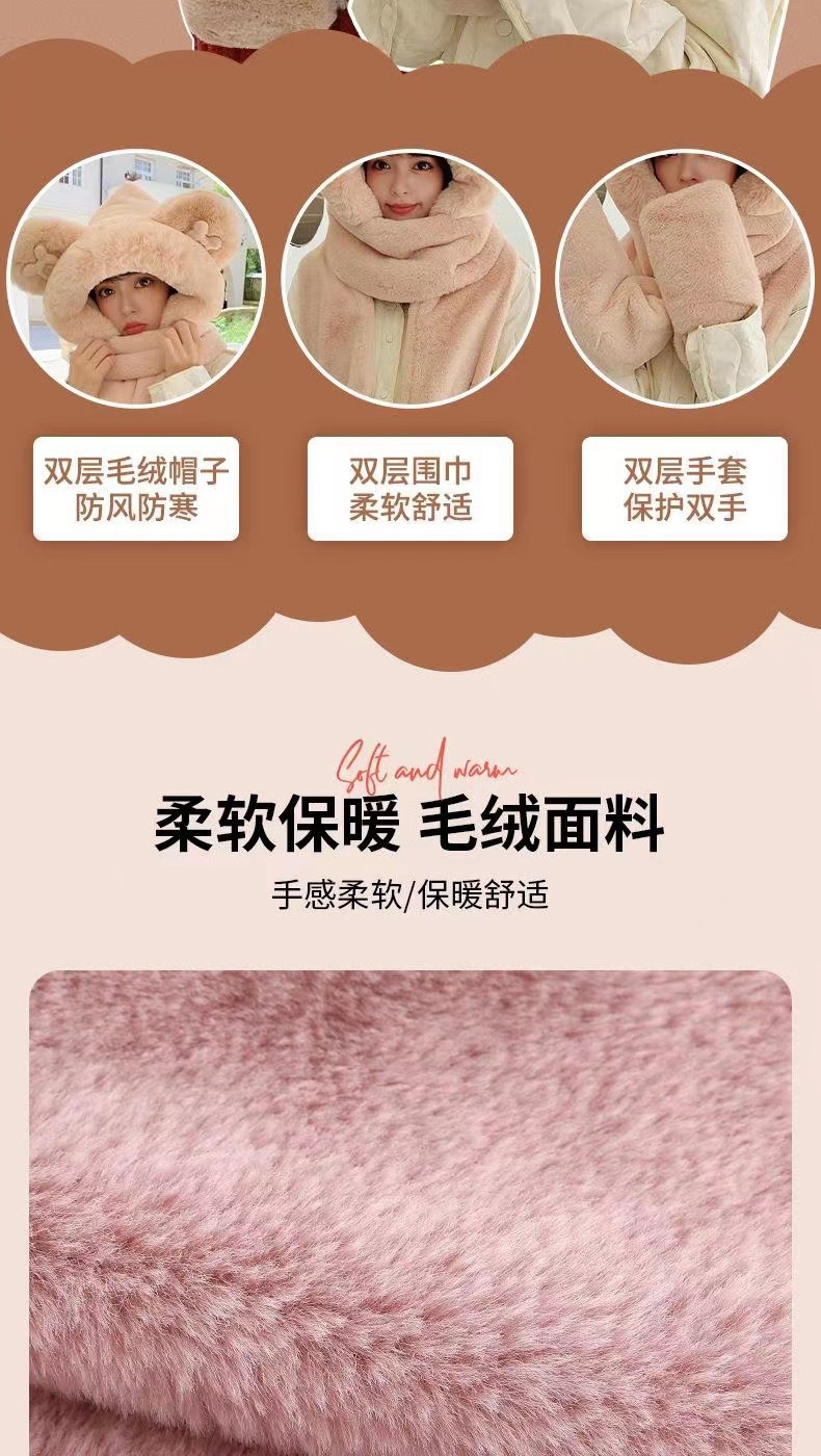 귀여운 미키 겨울 봉제 원피스 스카프 장갑 3 피스 세트 여성 더블 레이어 두꺼운 따뜻한 냉간 모자
