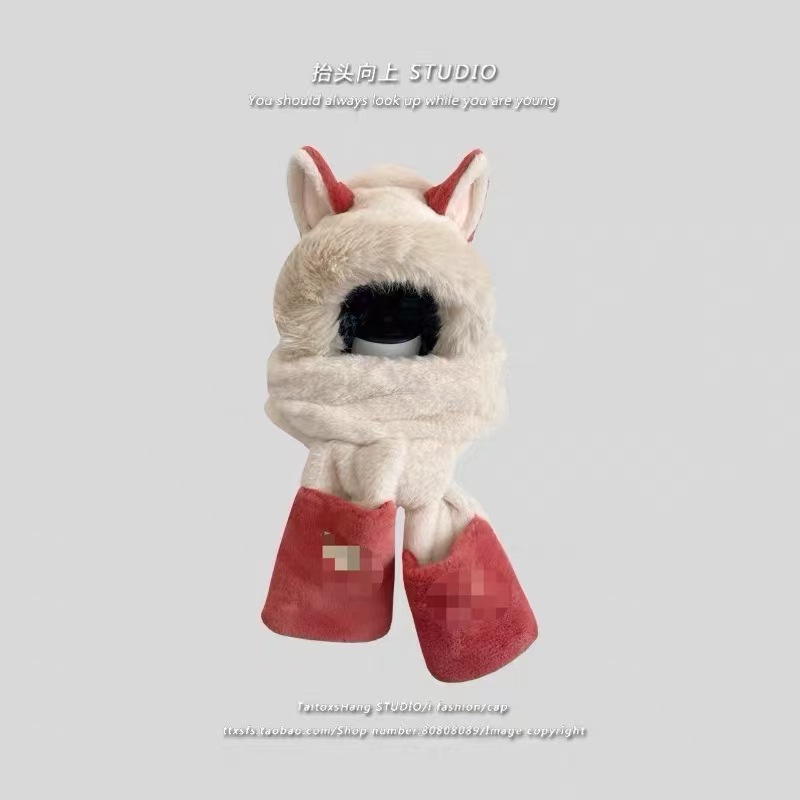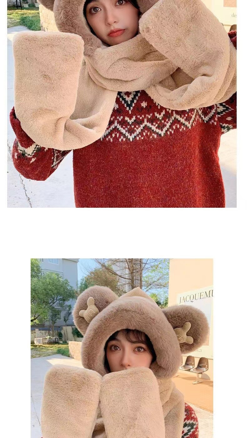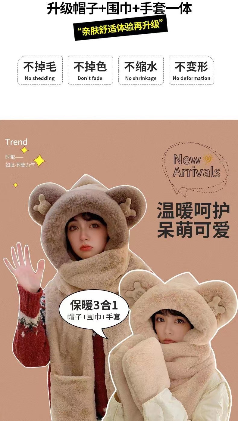 귀여운 미키 겨울 봉제 원피스 스카프 장갑 3 피스 세트 여성 더블 레이어 두꺼운 따뜻한 냉간 모자스토어 가기