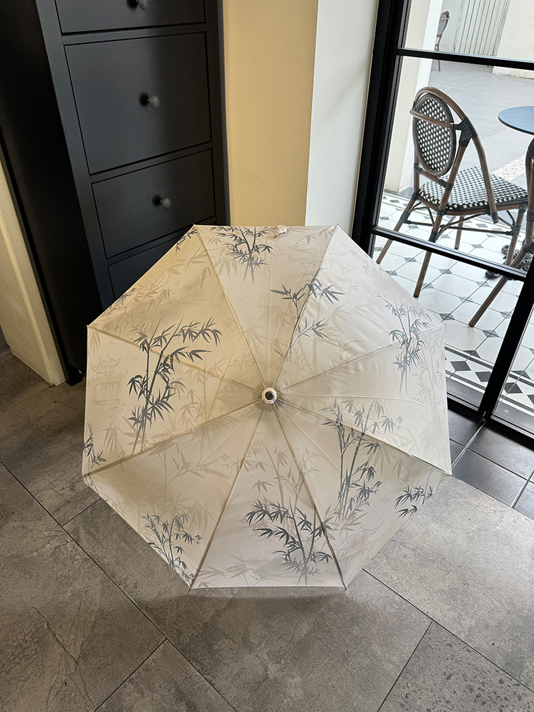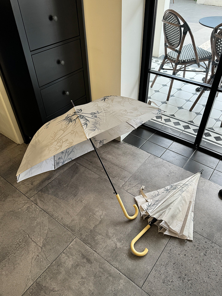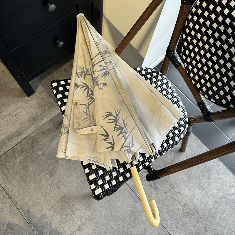 중국 시적인 대나무 긴 손잡이 우산 여성의 자동 우산 맑고 비오는 이중 사용 스트레이트 로드 우산 강화 바람 저항하는 단단한 곡선 손잡이 우산스토어 가기