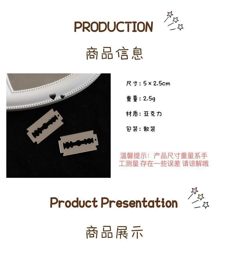 Cos 아크릴 펑크 하위 문화 하라주쿠 재미 블레이드 스파이스 소녀 달콤한 쿨 사이드 클립 헤드웨어 액세서리 할로윈스토어 가기