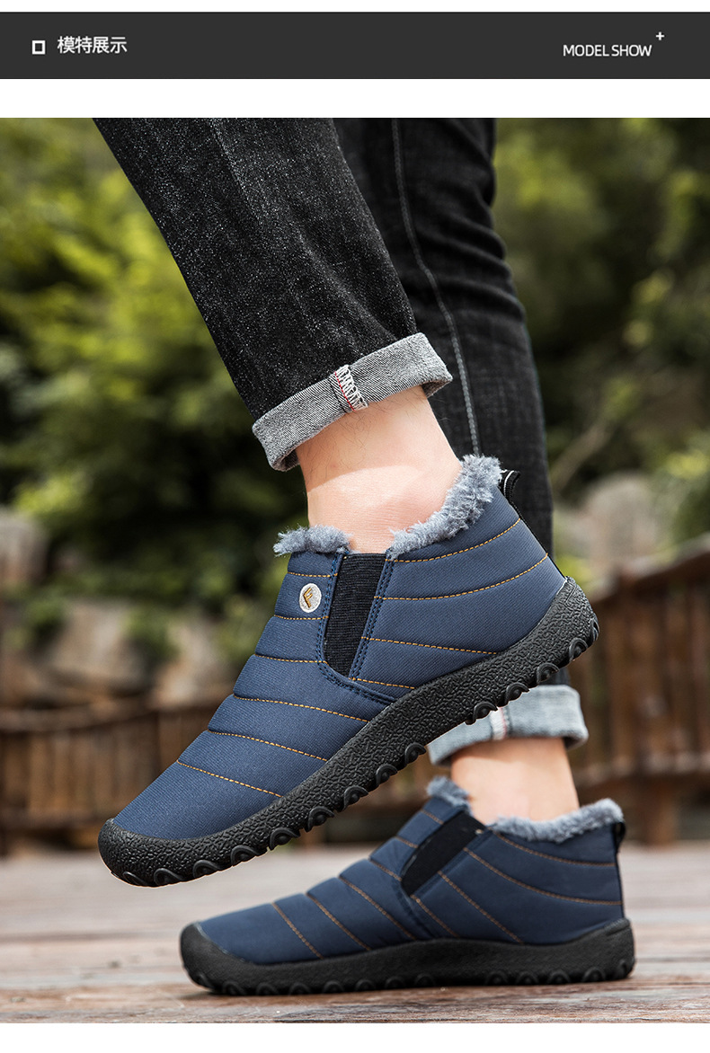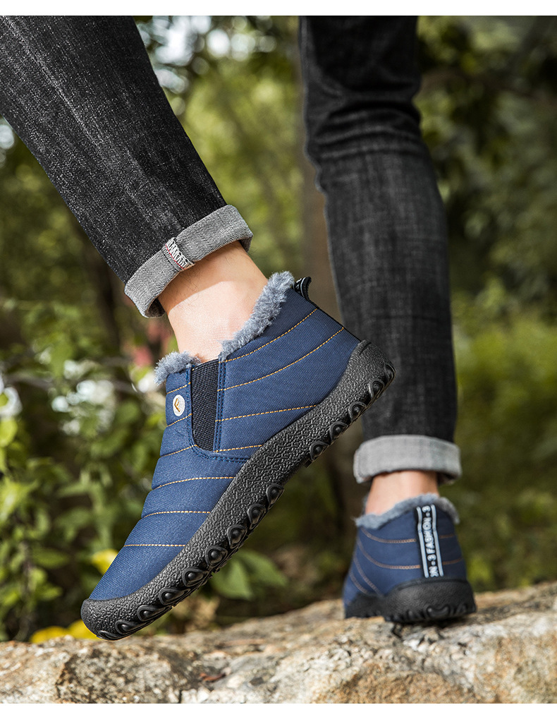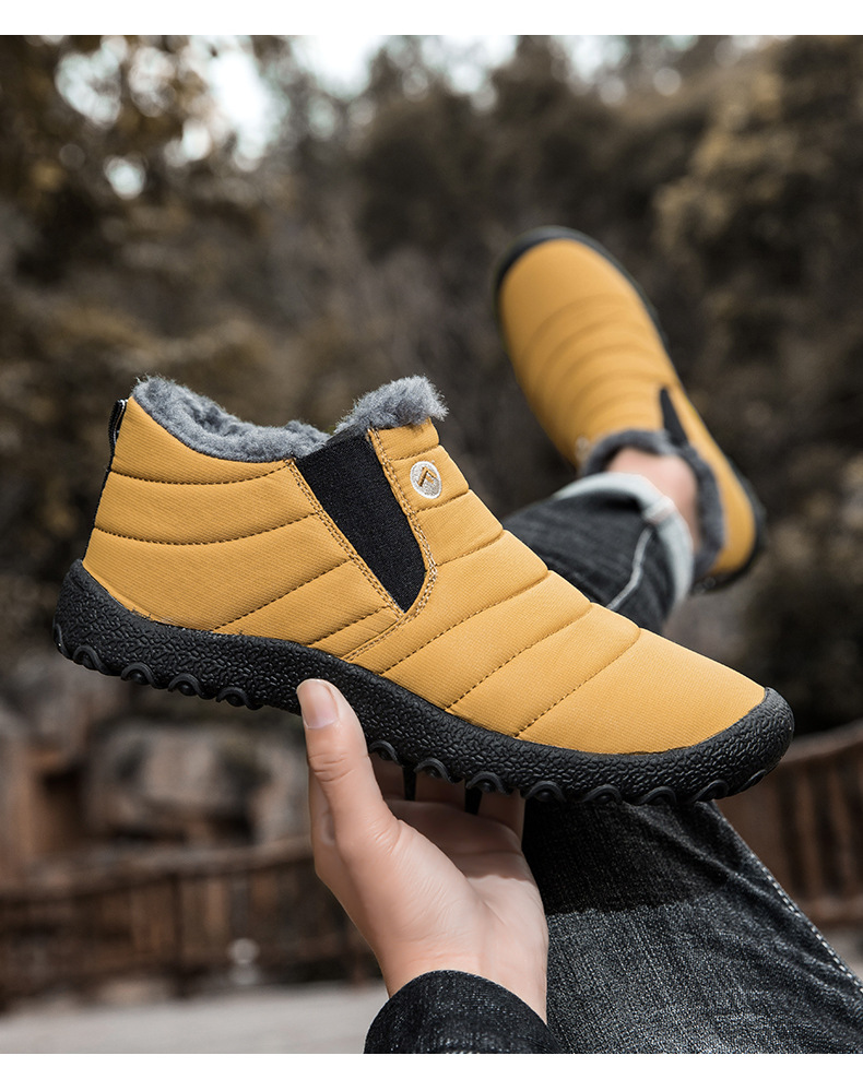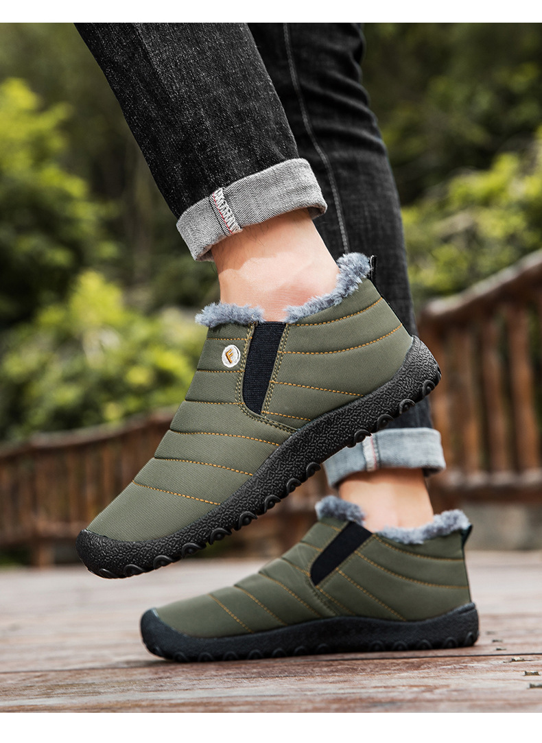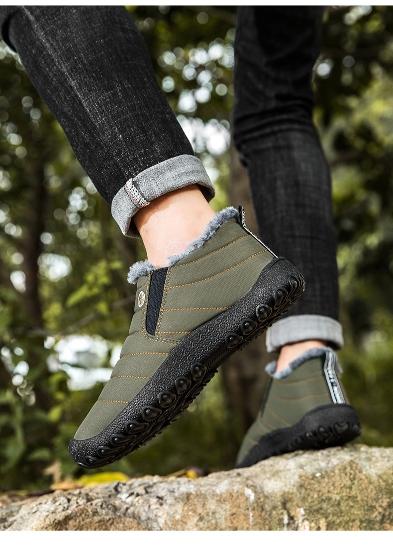 국경 간 플러스 사이즈 스노우 부츠 겨울 동북 남자 게으른 발 등산 하이 탑 기모 따뜻한 남성 신발 슬립 온