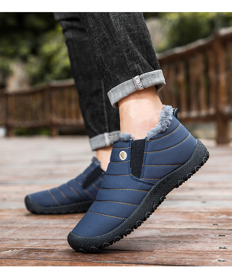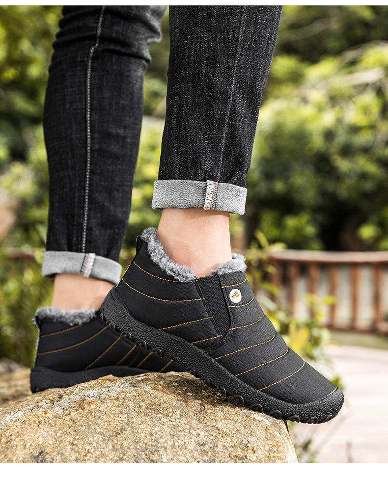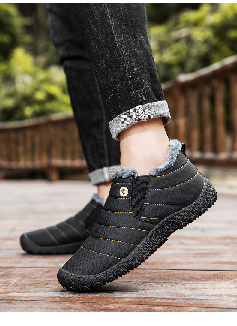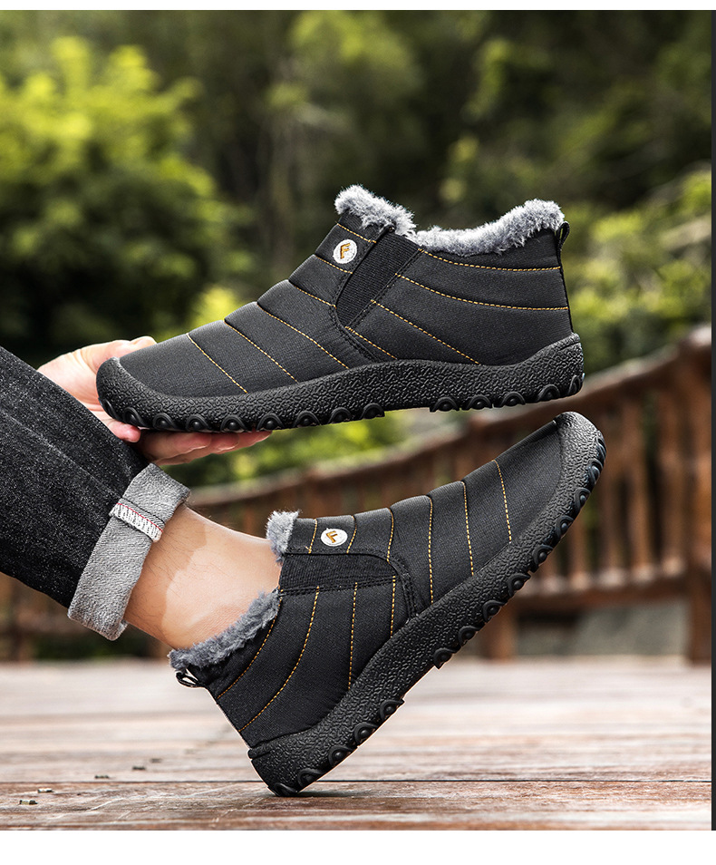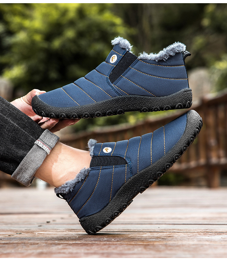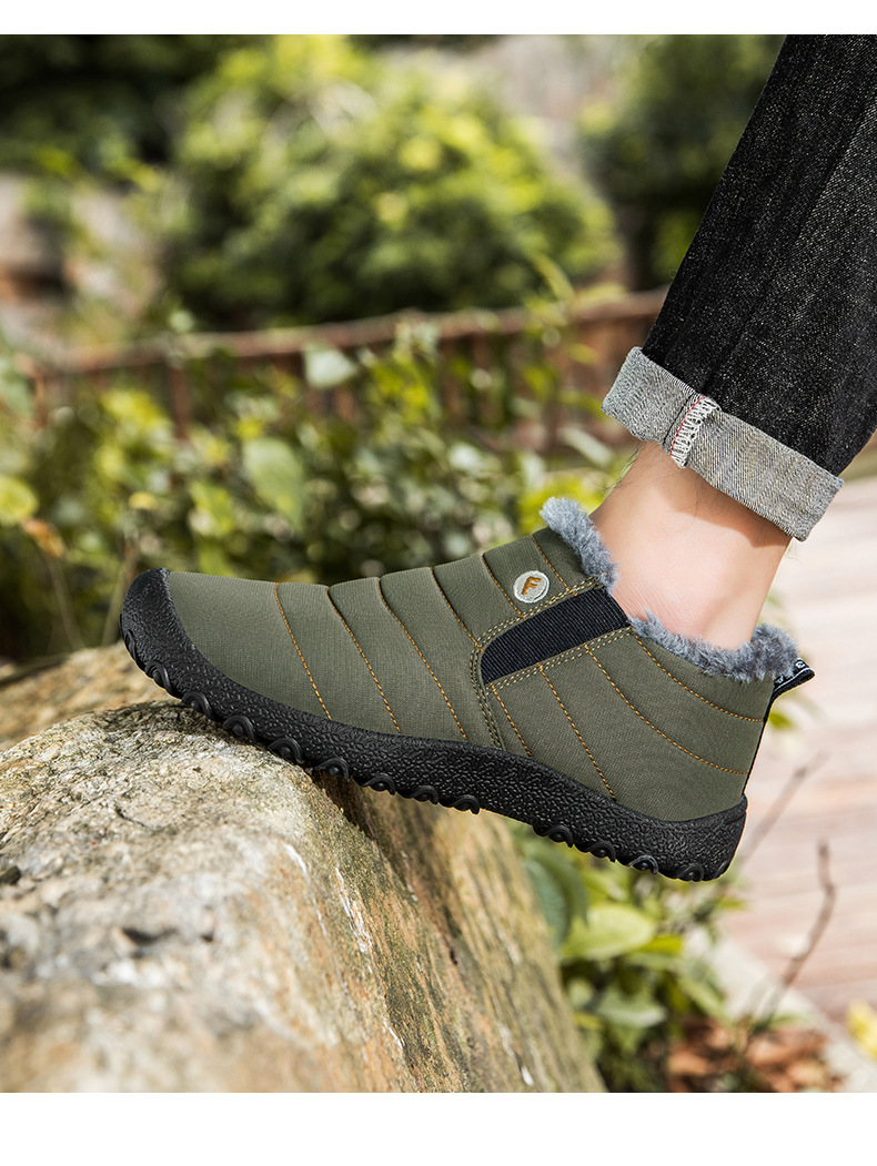 국경 간 플러스 사이즈 스노우 부츠 겨울 동북 남자 게으른 발 등산 하이 탑 기모 따뜻한 남성 신발 슬립 온