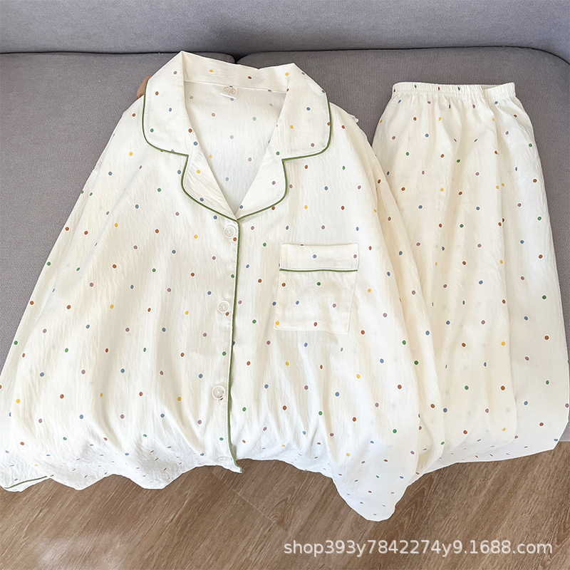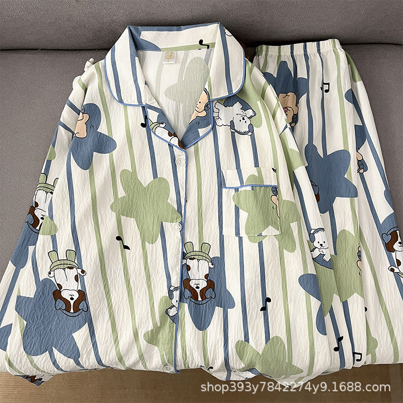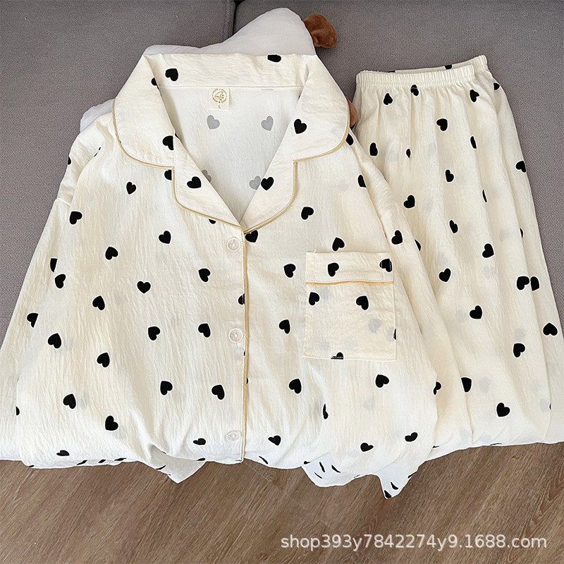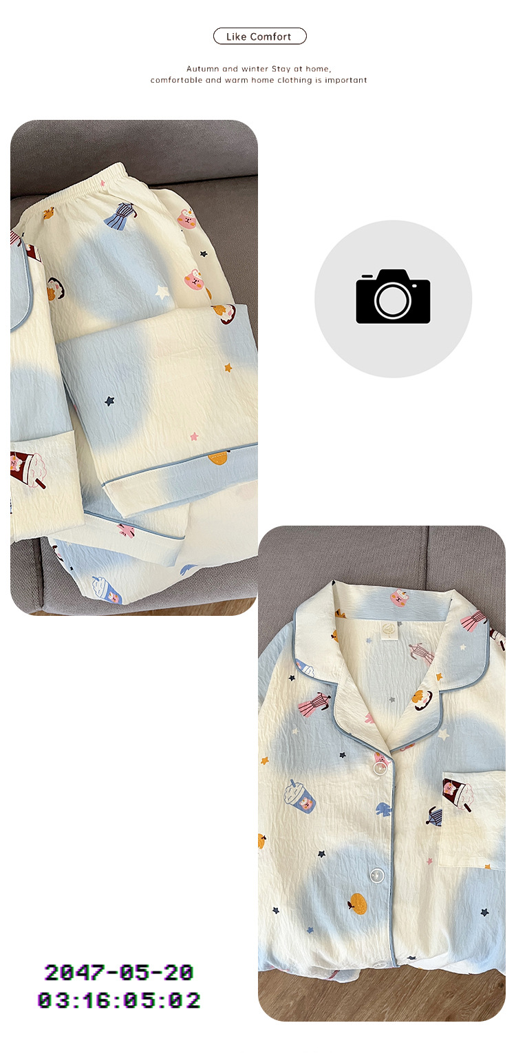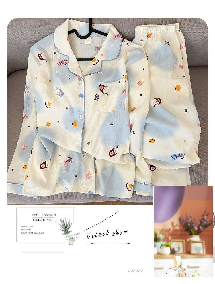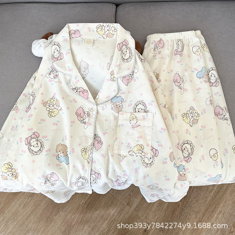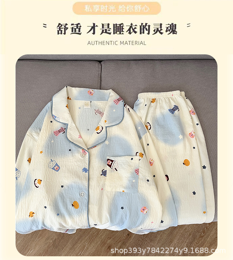 국경 간 현장 도매 다섯 스레드 봉제 공예 구름 면화 긴팔 바지 달콤한 여성스러운 스타일 카디건 홈웨어 세트