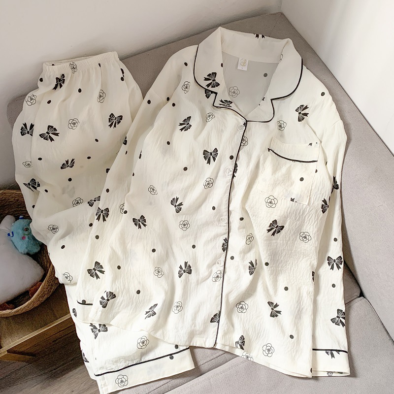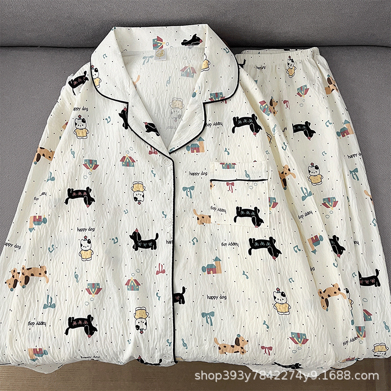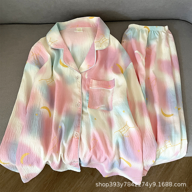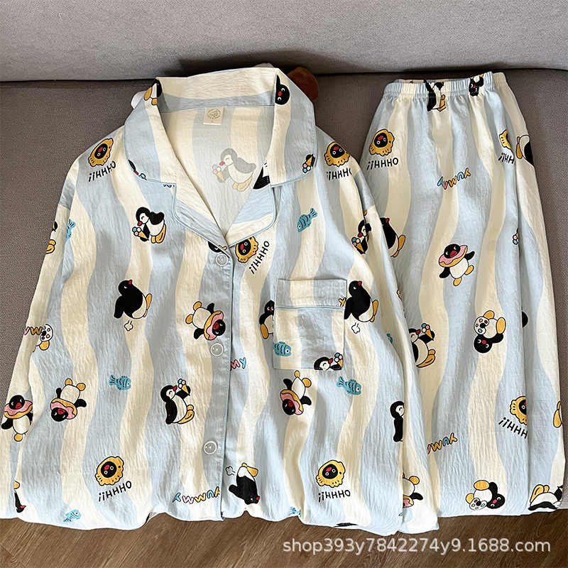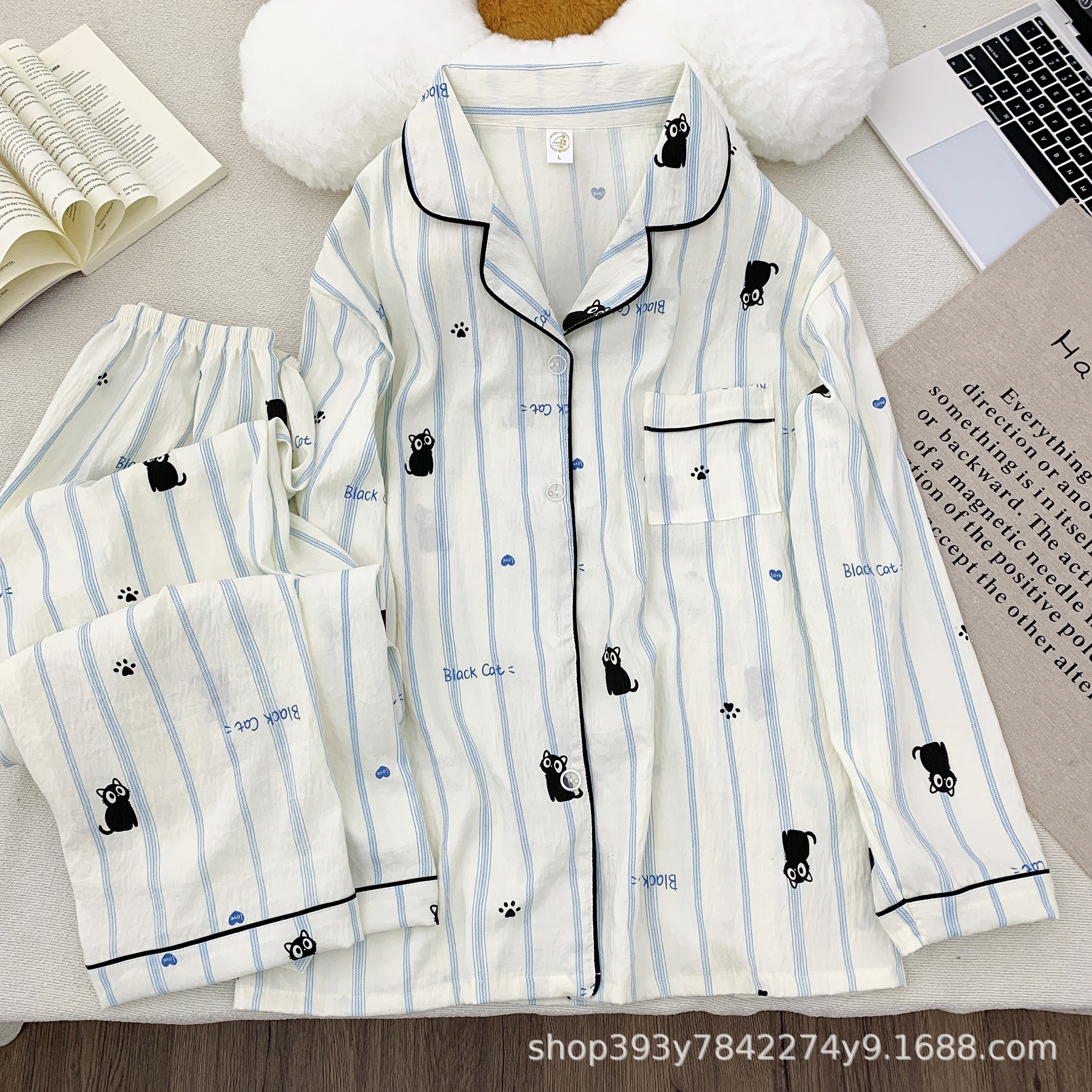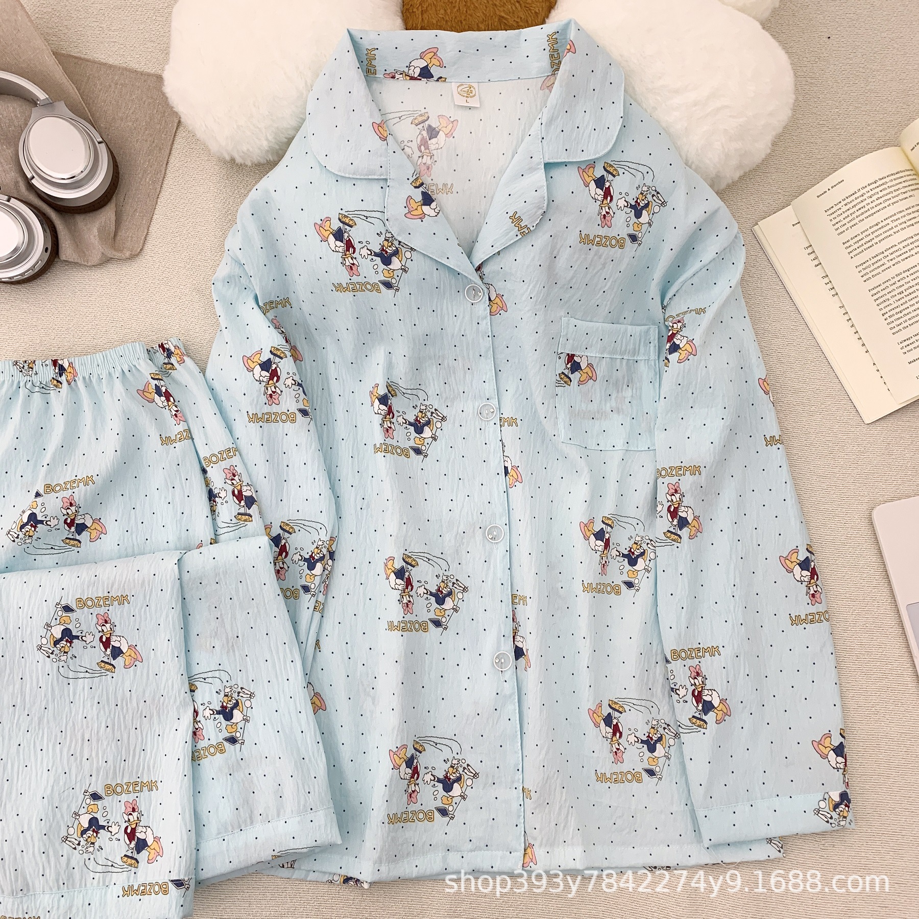 국경 간 현장 도매 다섯 스레드 봉제 공예 구름 면화 긴팔 바지 달콤한 여성스러운 스타일 카디건 홈웨어 세트