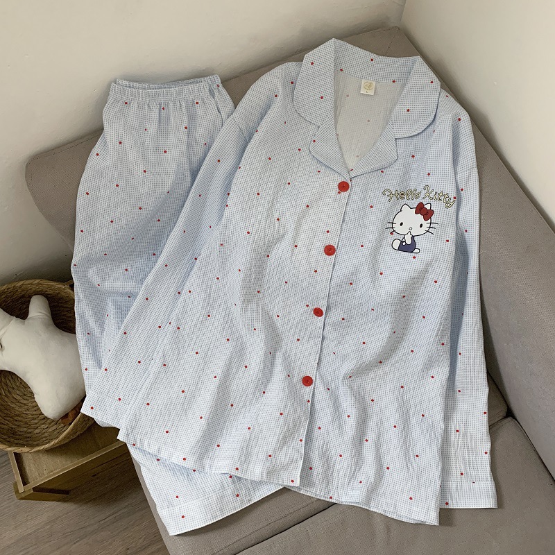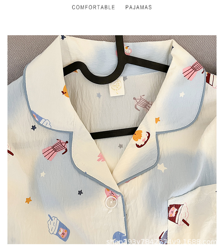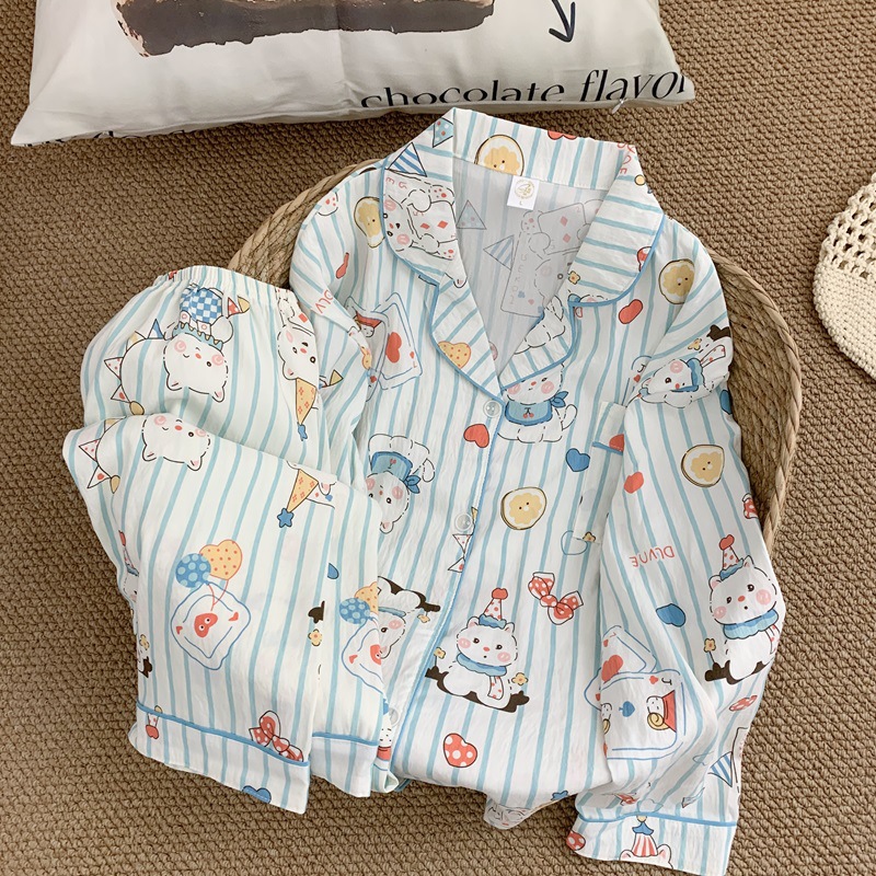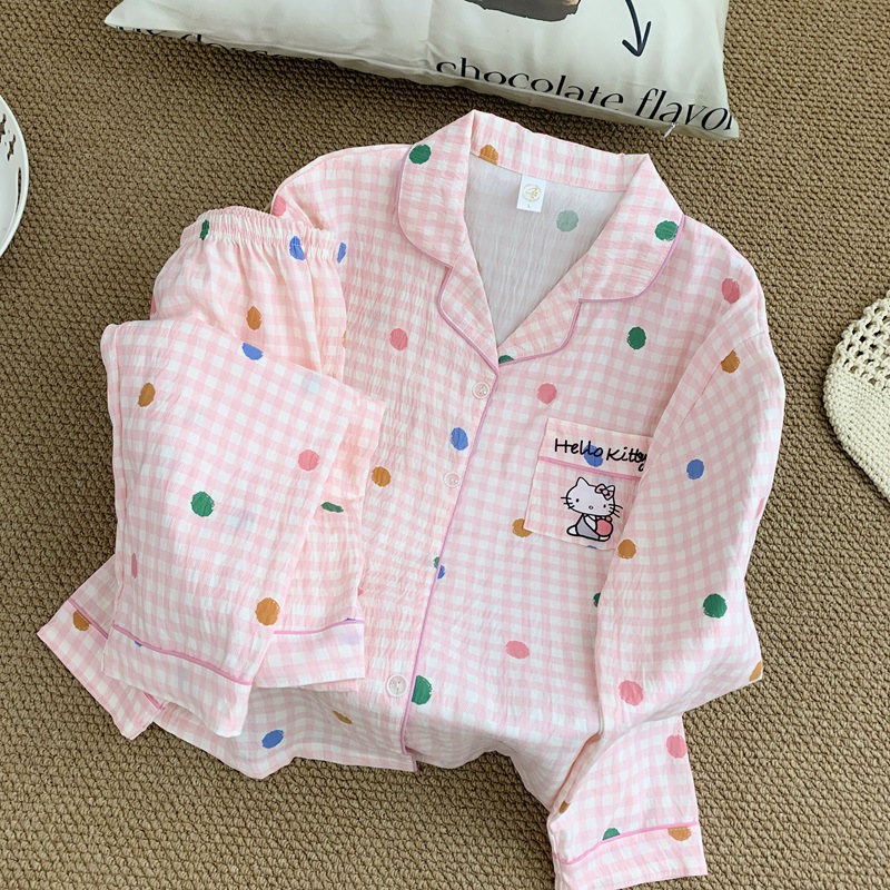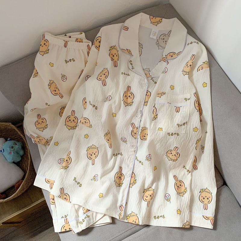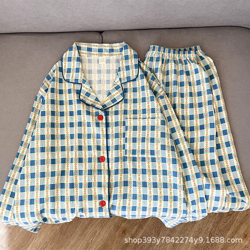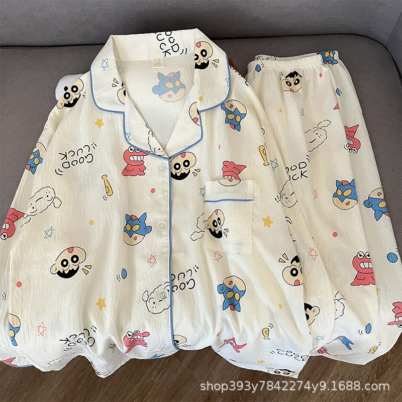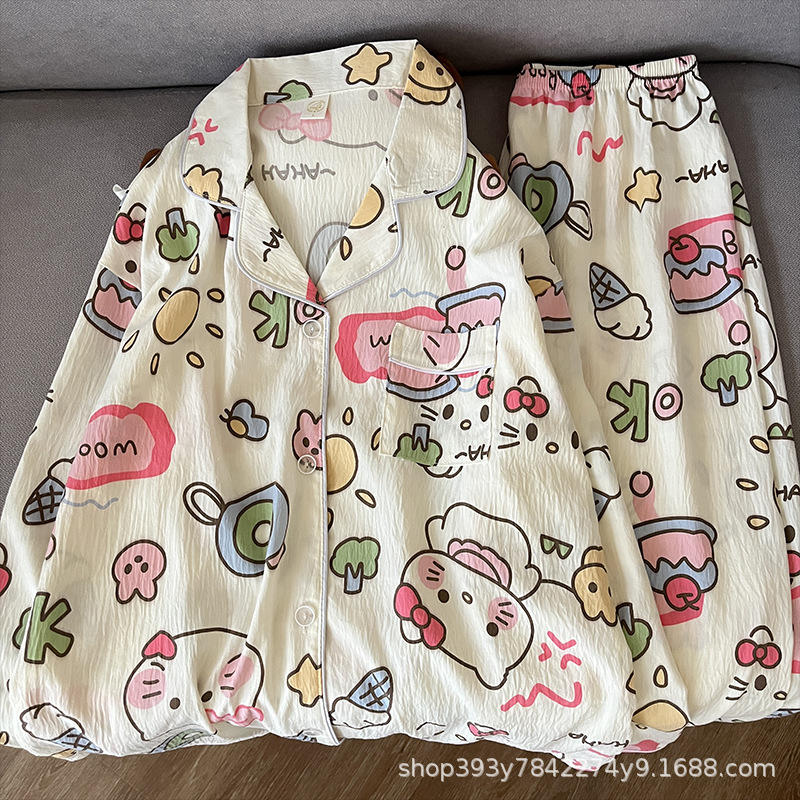 국경 간 현장 도매 다섯 스레드 봉제 공예 구름 면화 긴팔 바지 달콤한 여성스러운 스타일 카디건 홈웨어 세트