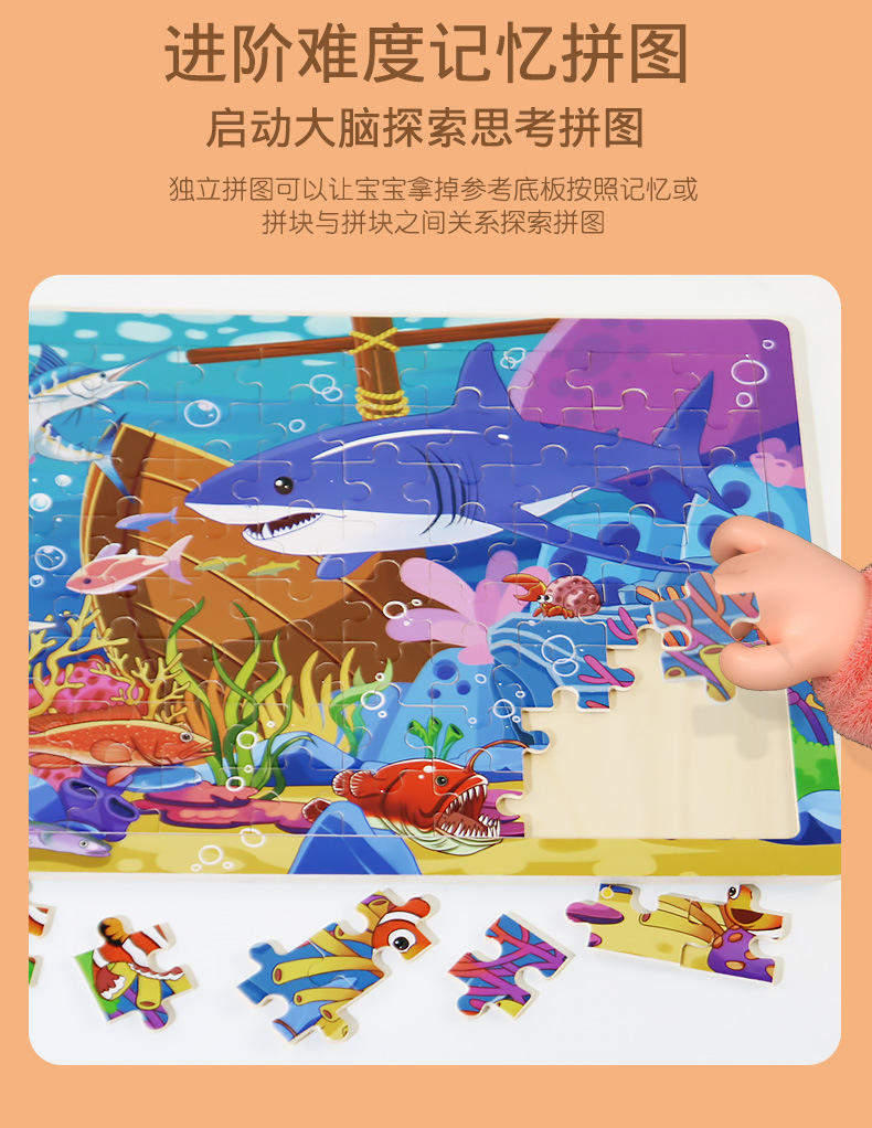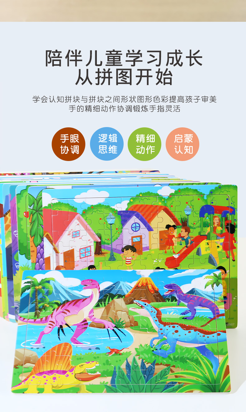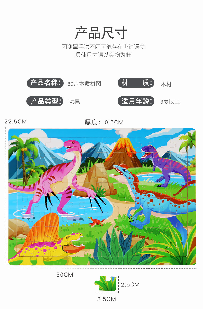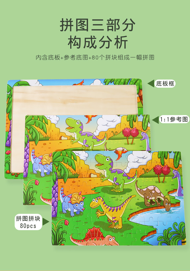 나무 80 조각 퍼즐 유아 만화 공룡 동물 비행기 퍼즐 아기 조기 교육 및 정보 건물 블록 장난감스토어 가기