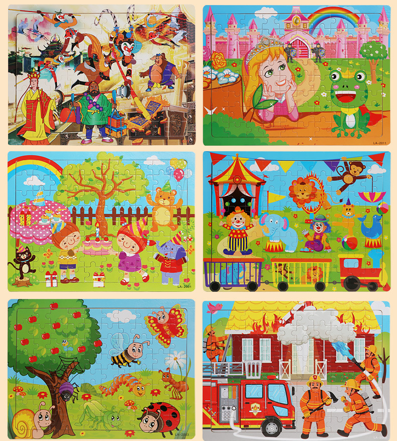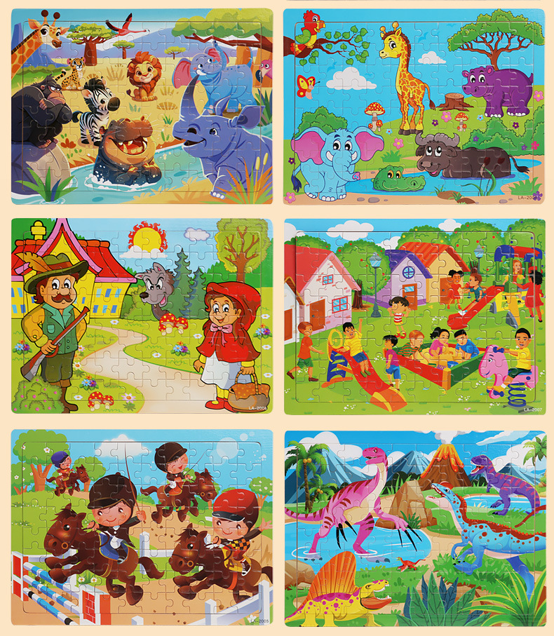 나무 80 조각 퍼즐 유아 만화 공룡 동물 비행기 퍼즐 아기 조기 교육 및 정보 건물 블록 장난감