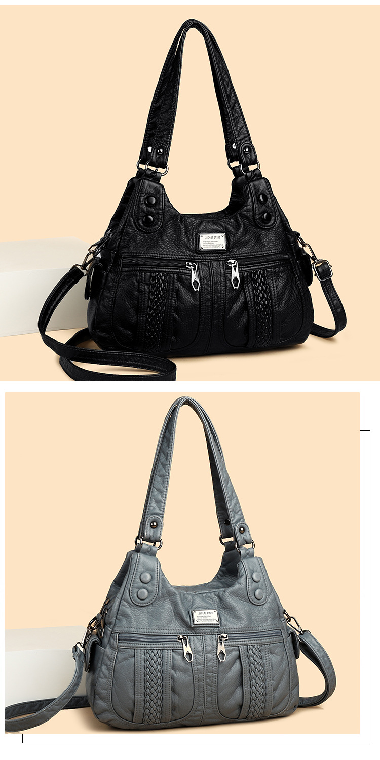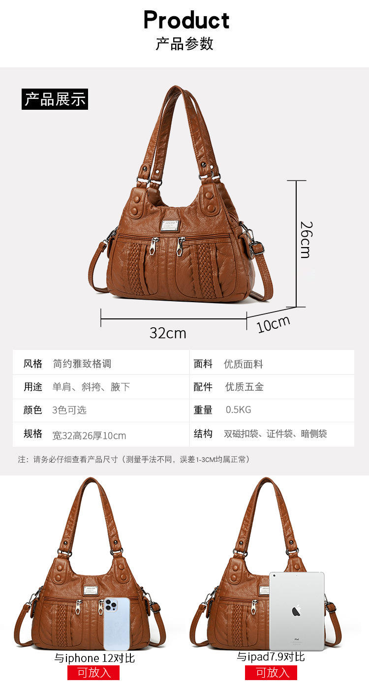 부드러운 가죽 가방 여성의 2024 새로운 패션 여성 가방 모든 경기 여성의 어깨 가방 세탁 가죽 간단한 캐주얼 크로스 바디 백스토어 가기