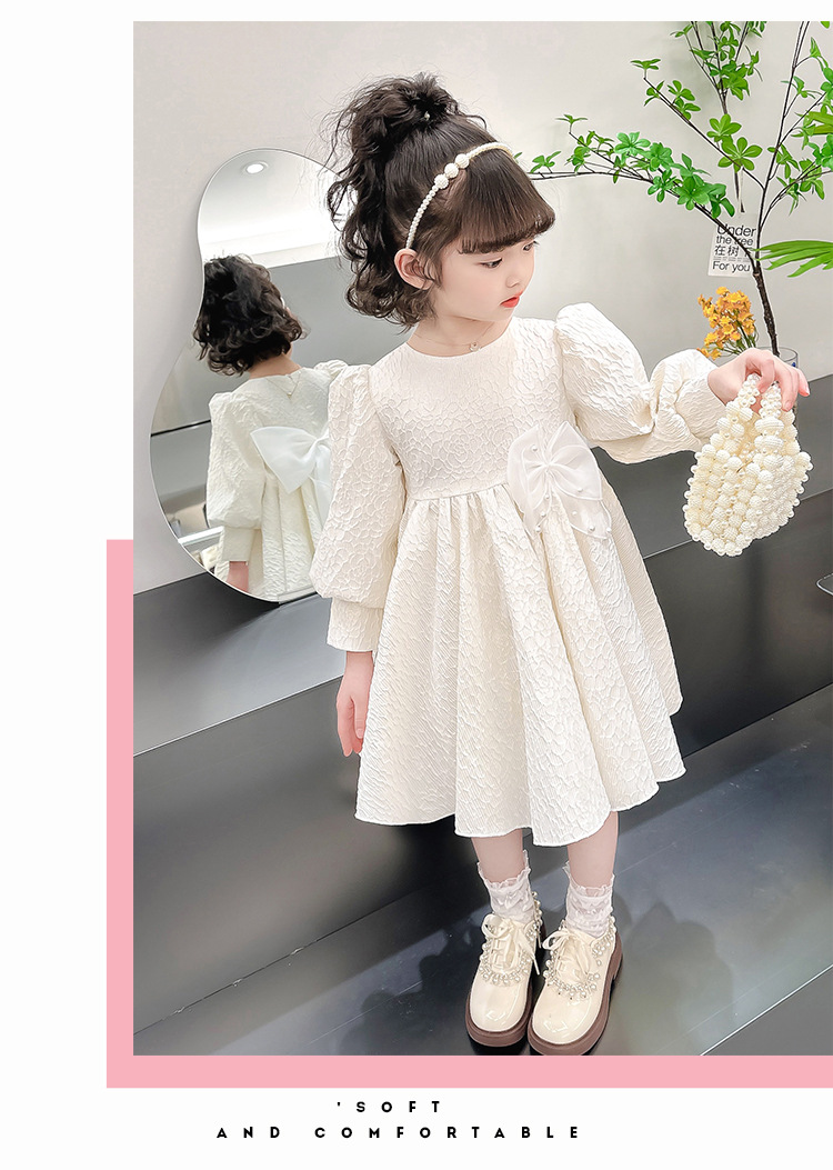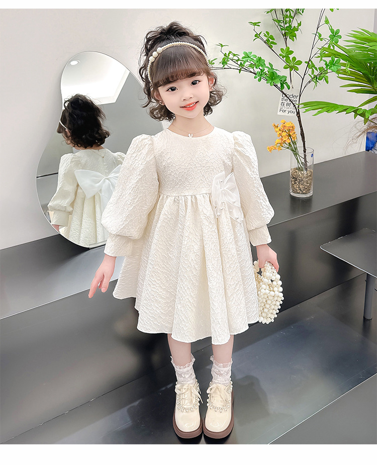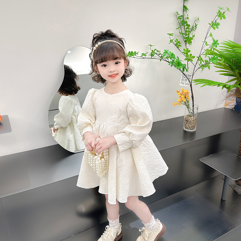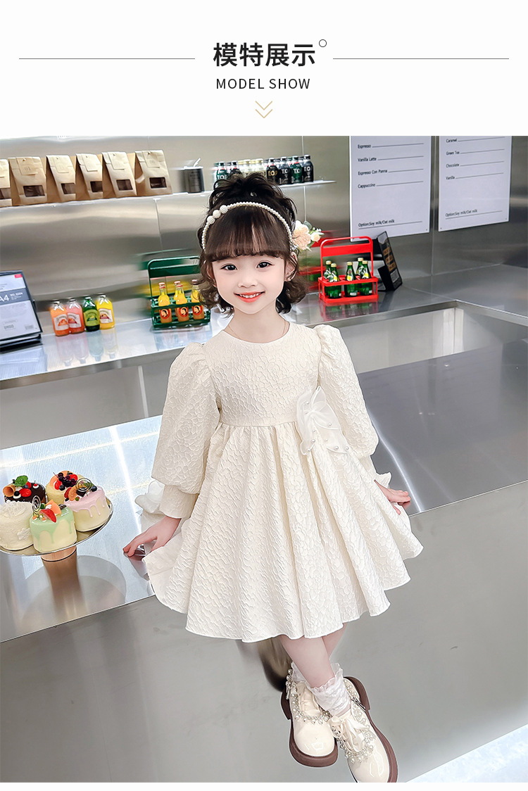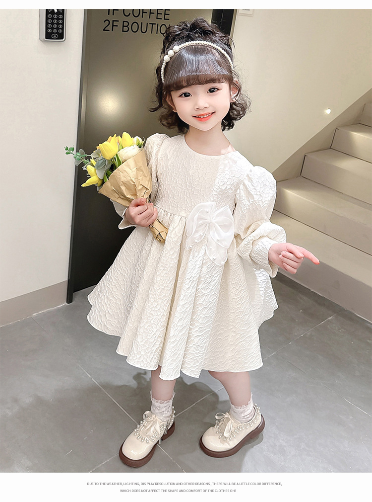 소녀 긴 소매 원피스 봄과 가을 2024 새로운 어린이 다시 활 레이스 공주 원피스 생일 원피스스토어 가기