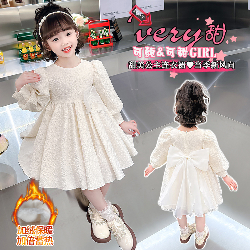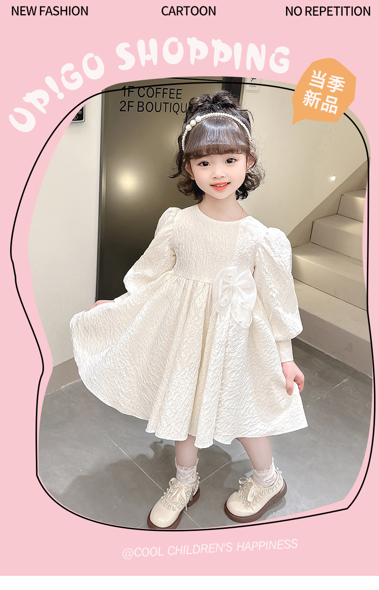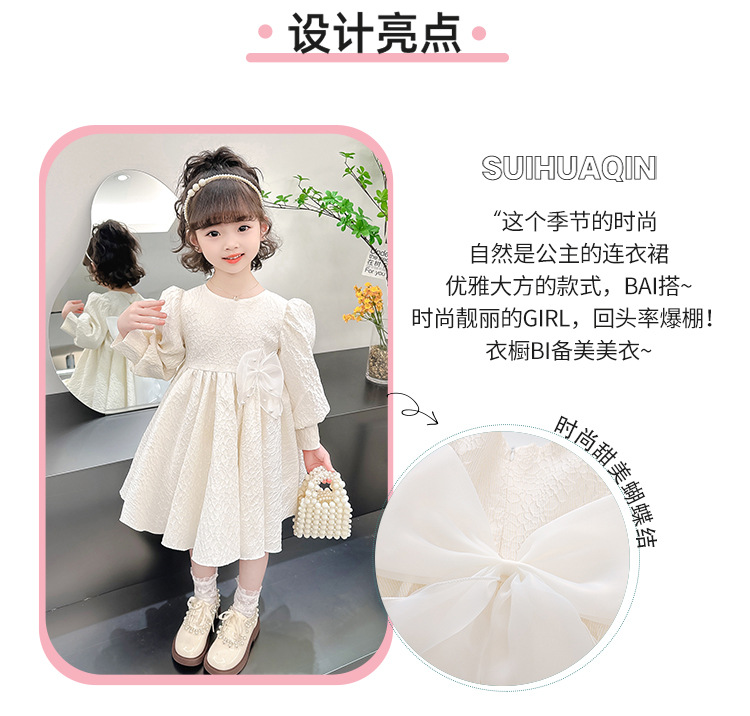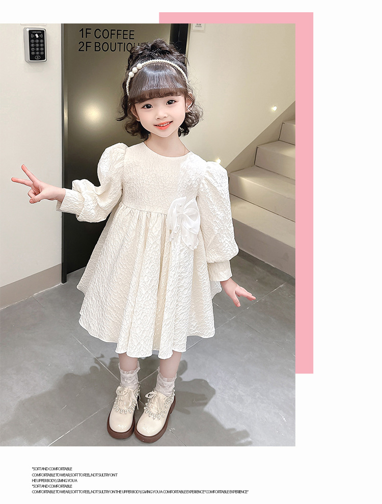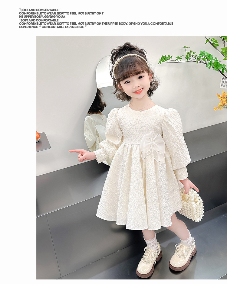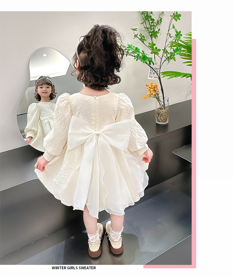 소녀 긴 소매 원피스 봄과 가을 2024 새로운 어린이 다시 활 레이스 공주 원피스 생일 원피스스토어 가기