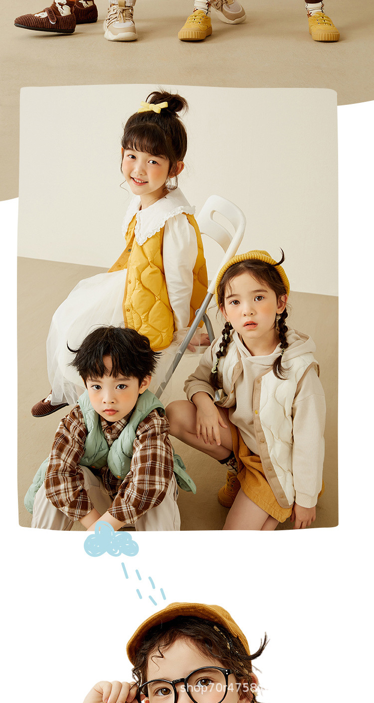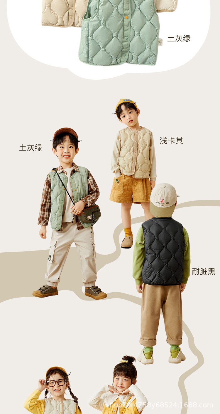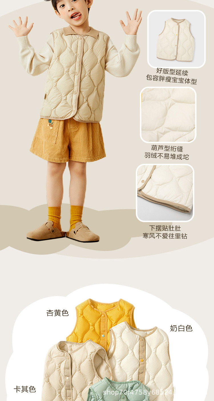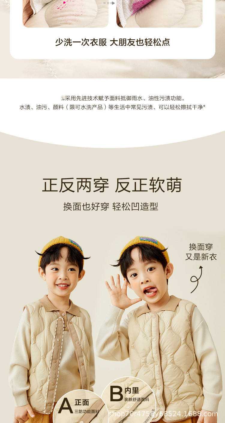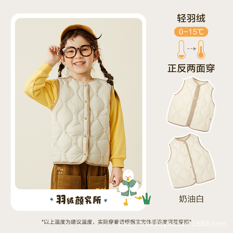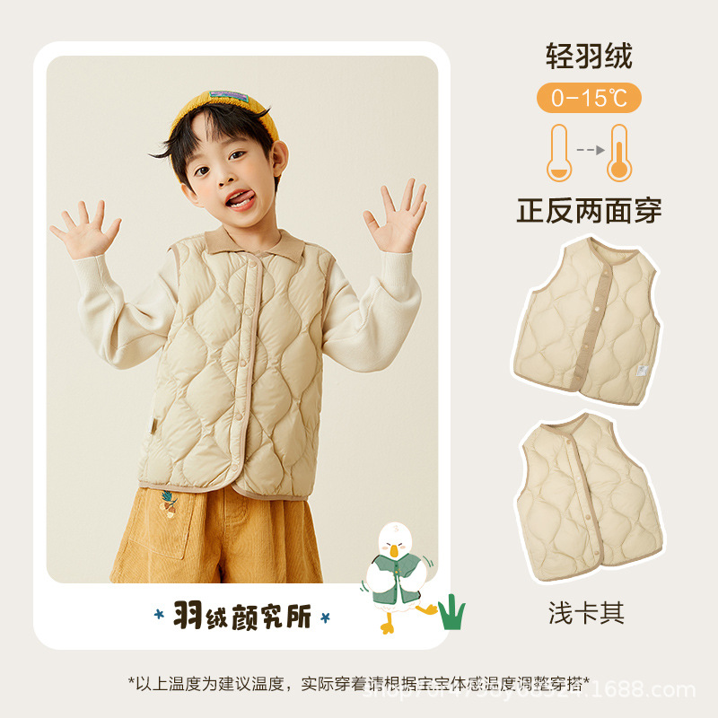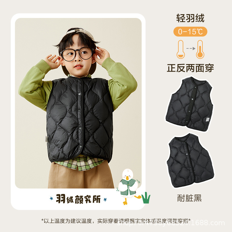 어린이 조끼 소년 다운 조끼 2024 가을 및 겨울 어린이 착용 소녀 양면 착용 아기의 경량 3 방형 조명 및 따뜻한스토어 가기