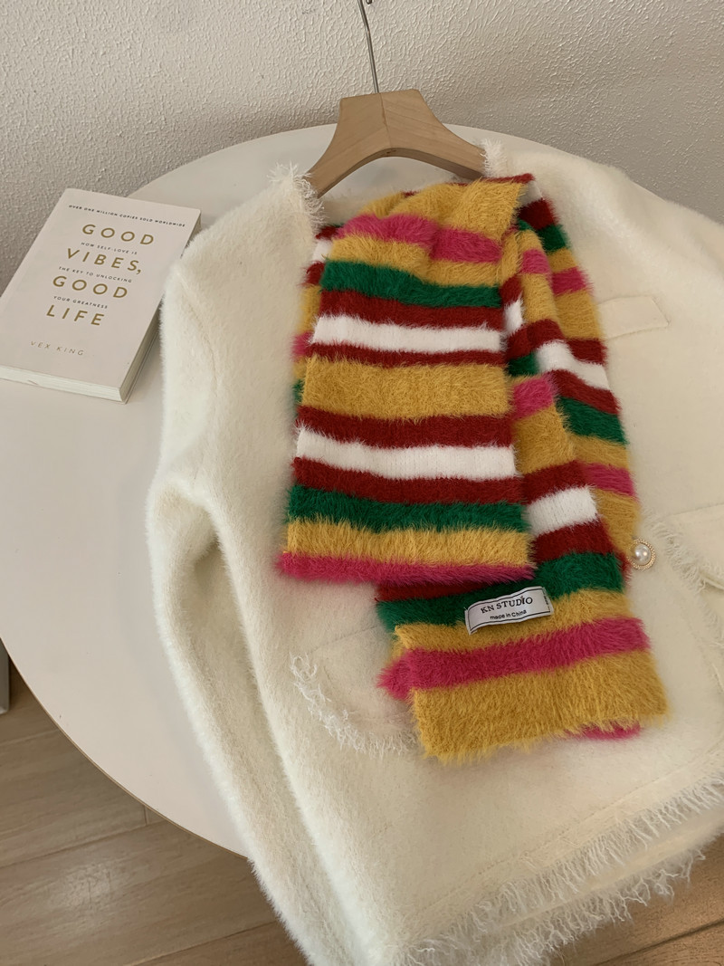 고급 센스 도파민 컬러 스트라이프 니트 스카프 한국 가을과 겨울 새로운 올 매치 모방 밍크 스카프