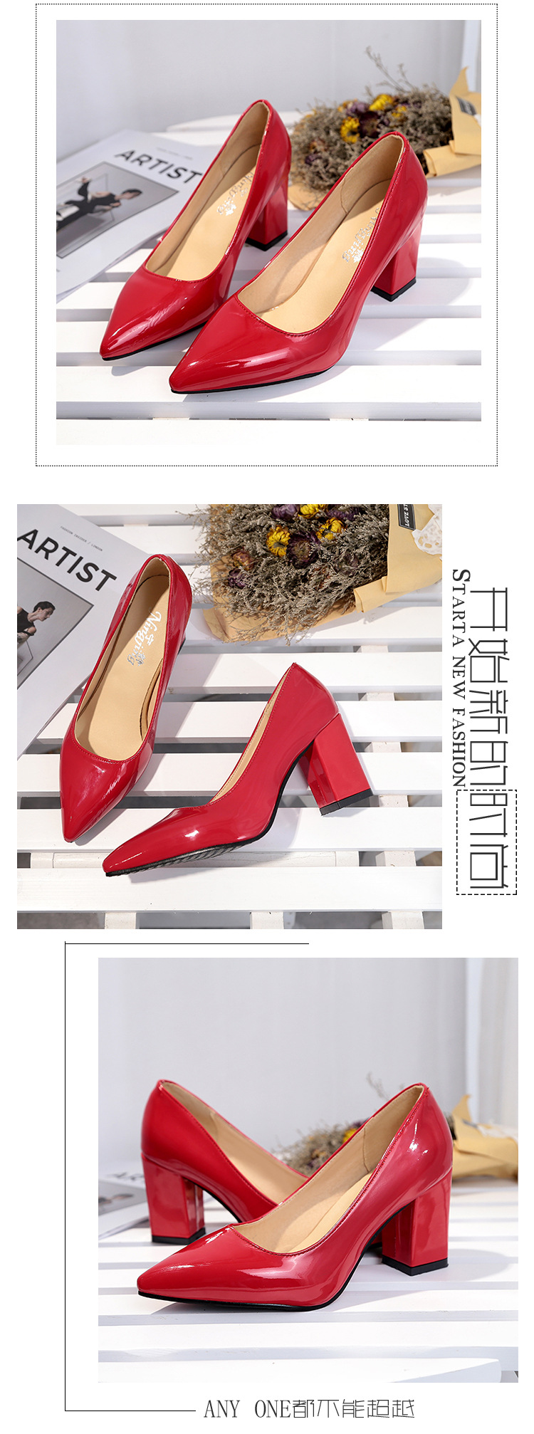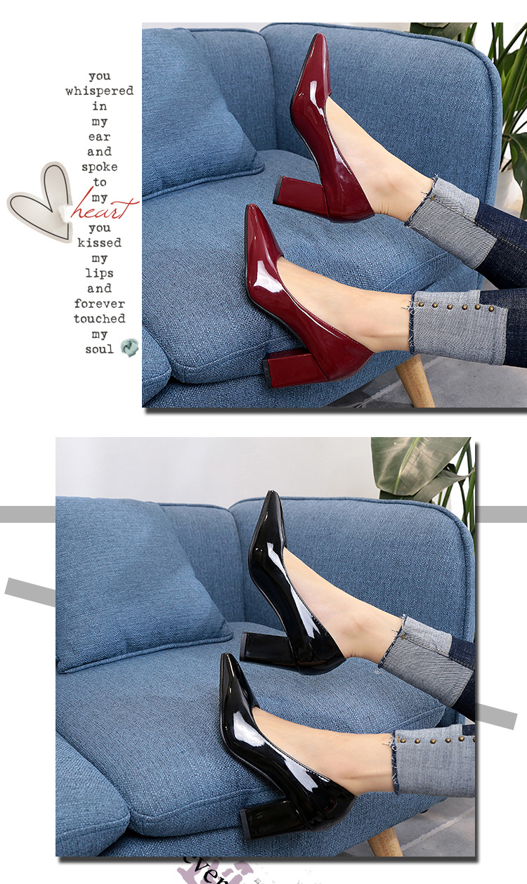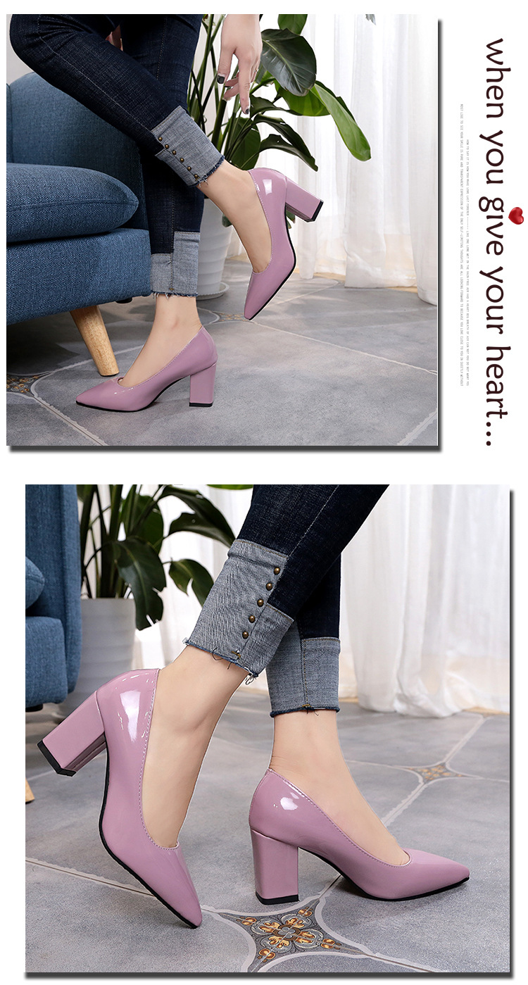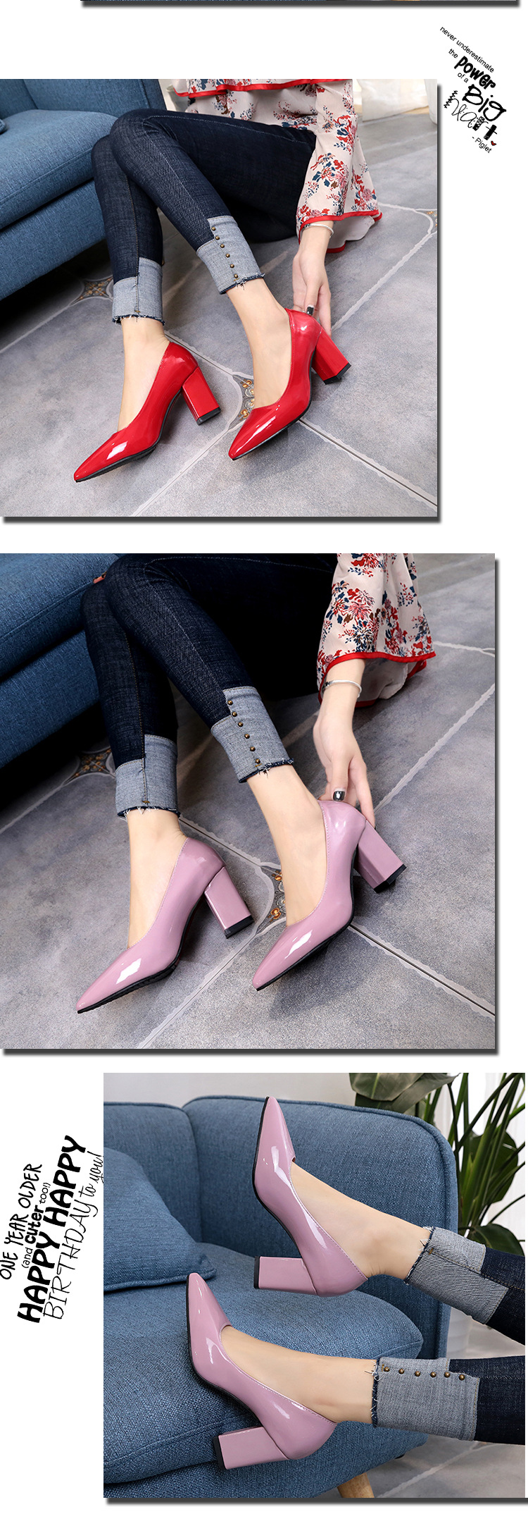 하이힐 여성의 2024 새로운 여성 신발 봄 유럽과 미국의 뾰족한 발가락 얕은 입 싱글 신발 여성의 청키 힐 미드 힐 패션 신발 크기 43스토어 가기