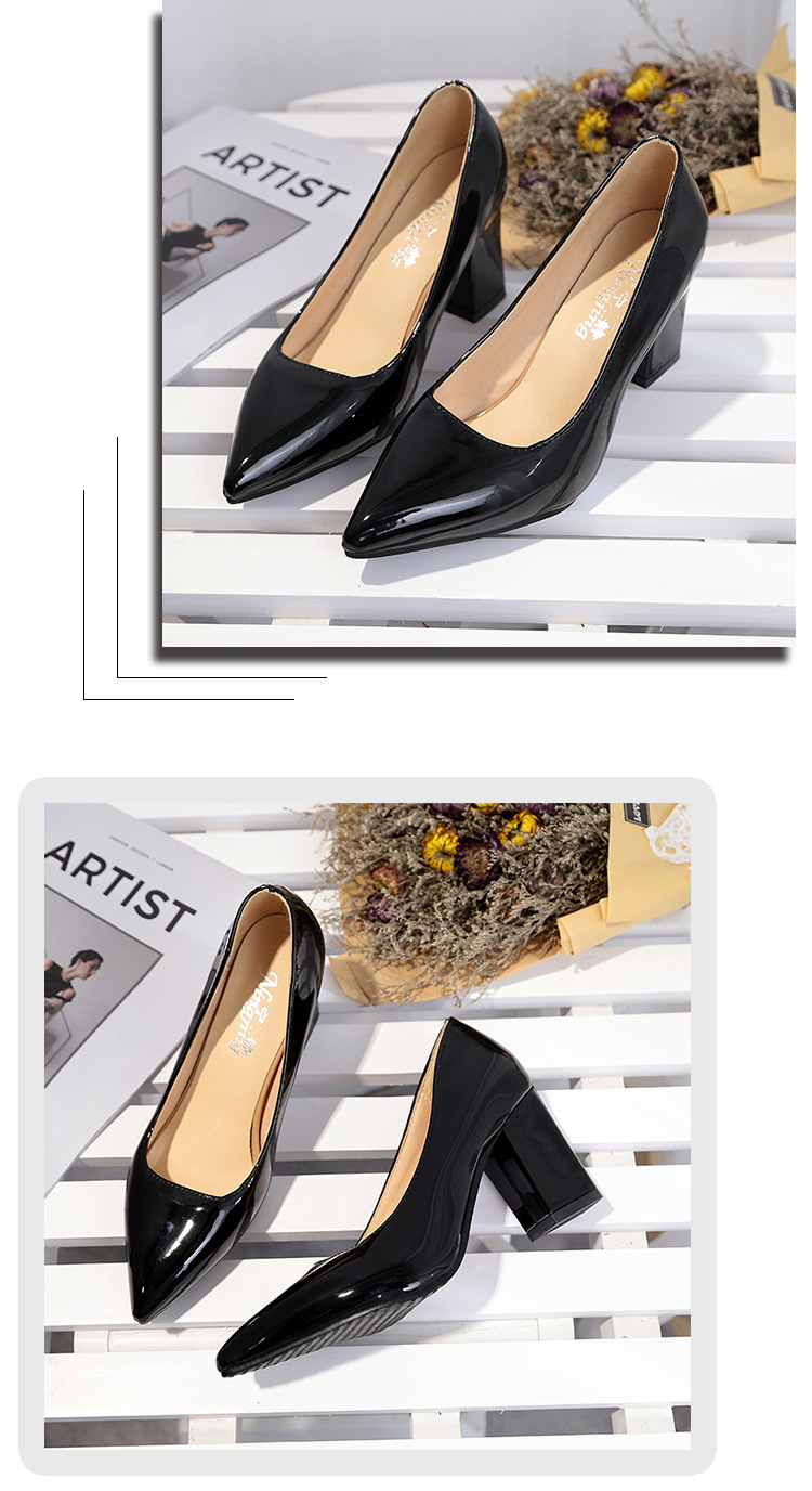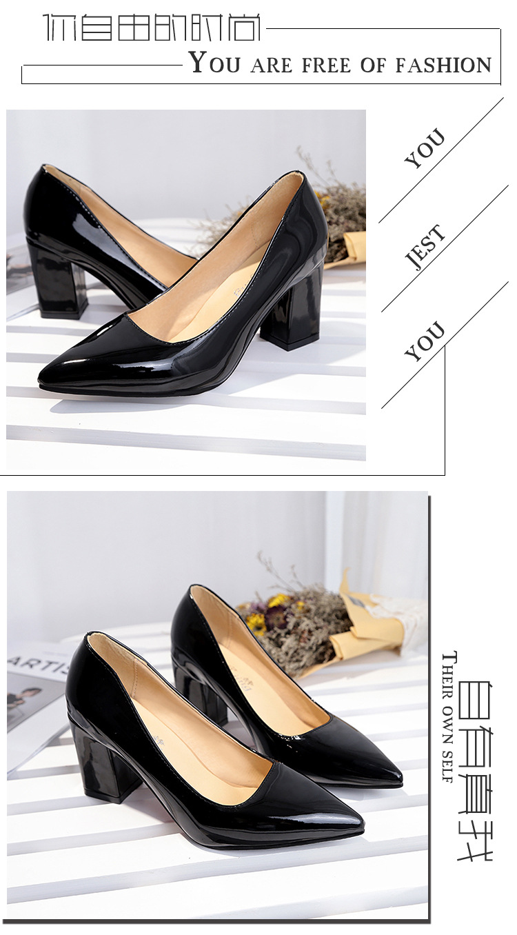 하이힐 여성의 2024 새로운 여성 신발 봄 유럽과 미국의 뾰족한 발가락 얕은 입 싱글 신발 여성의 청키 힐 미드 힐 패션 신발 크기 43