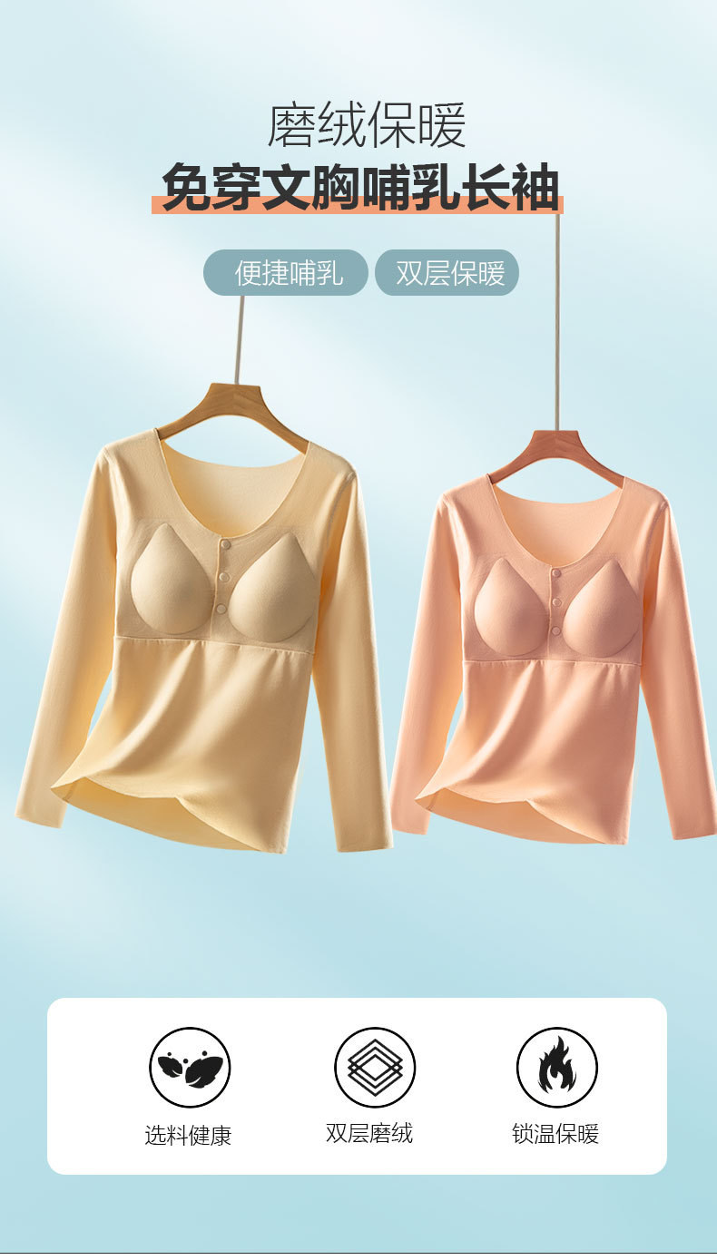 가을 겨울 기모 긴팔 상의, 수유복, 산후복, 임신기 하의 셔츠, 수유 가능, 두껍고 따뜻함