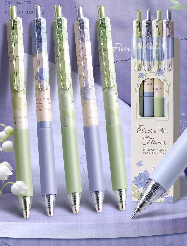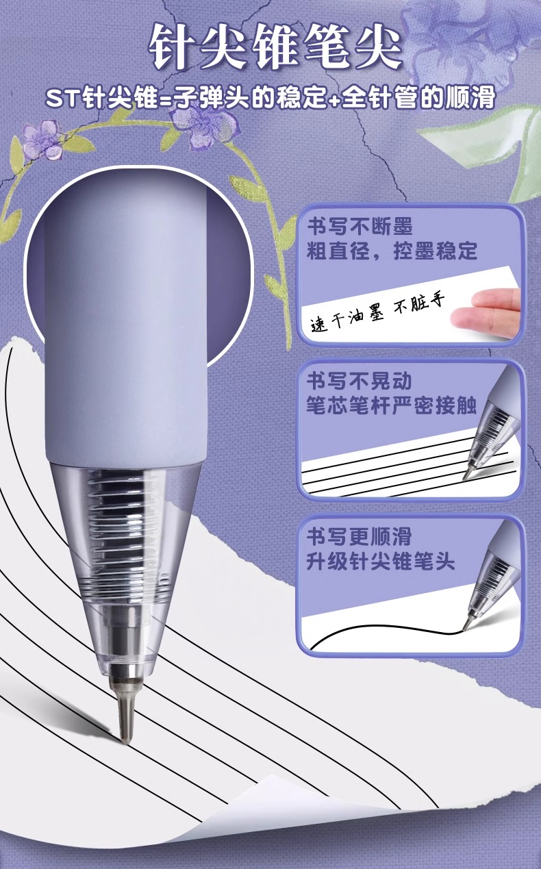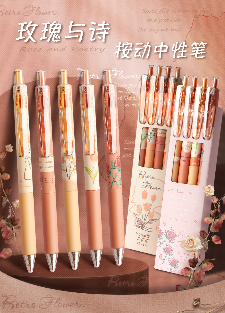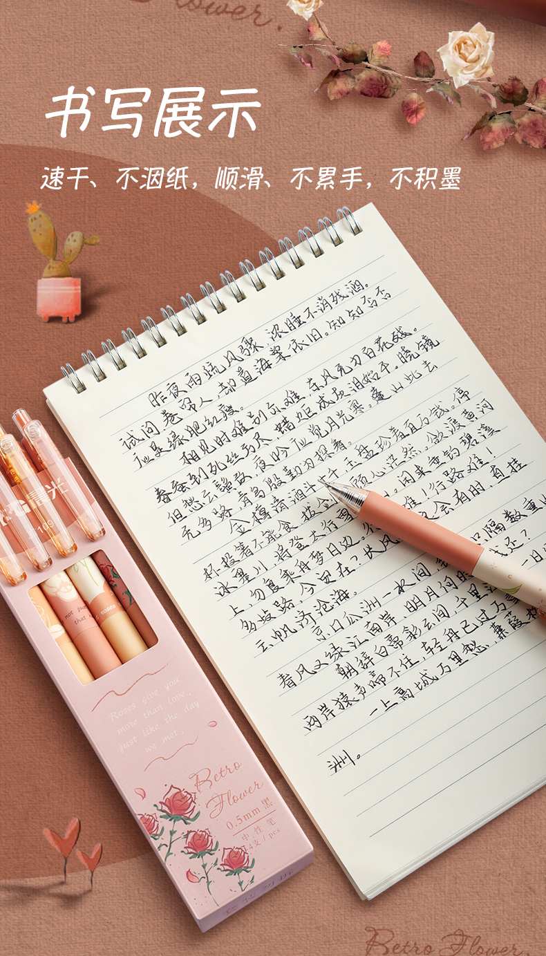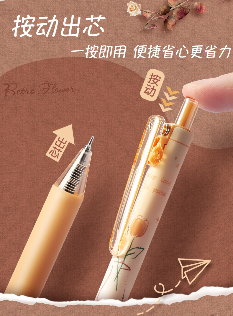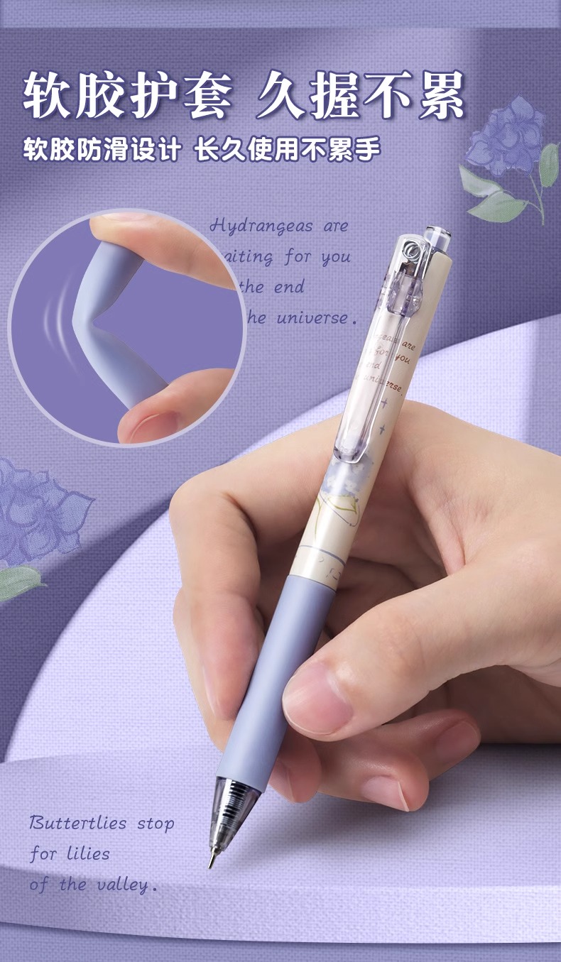 아침 가벼운 백합 난초 프레스 젤 펜 블룸 시 장미 펜 블랙 학생 시험 특수 바늘 콘 st