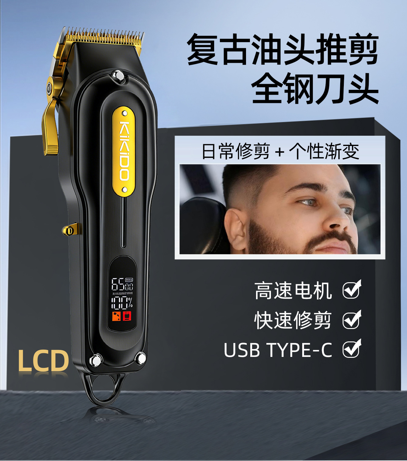 국경을 넘는 디지털 디스플레이 고속 전문 이발기 금속 전기 이발기 대용량 배터리 전기 이발기 오래 지속되는 배터리 수명스토어 가기