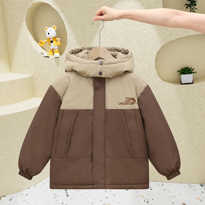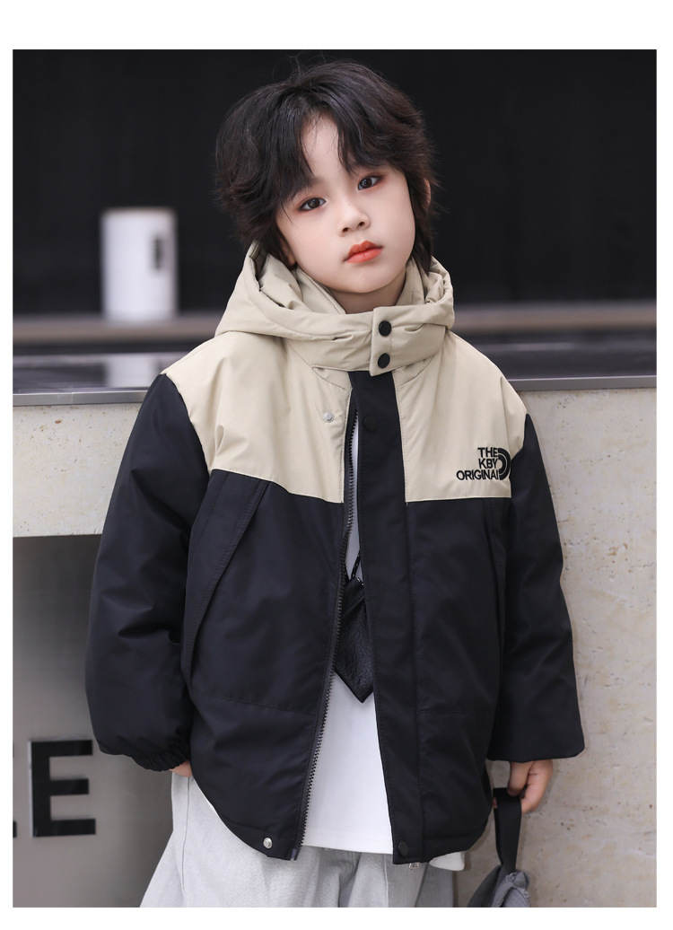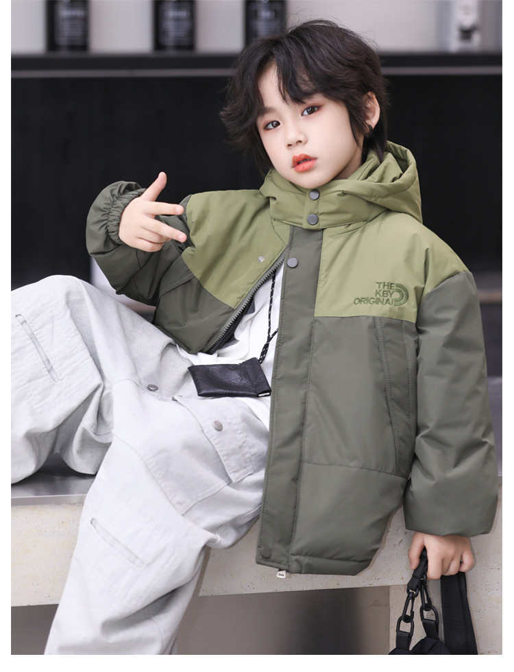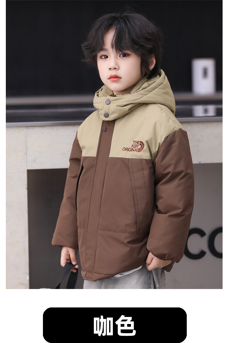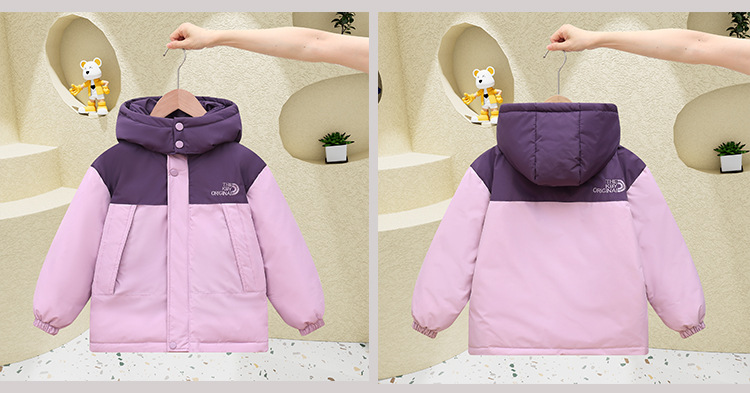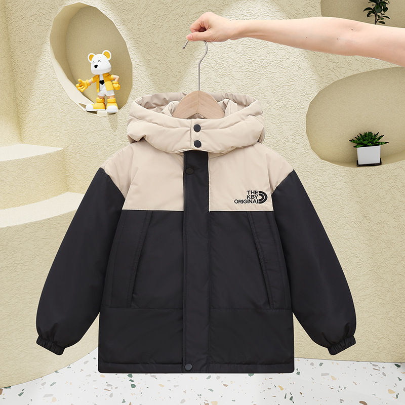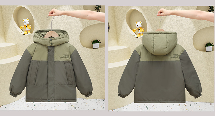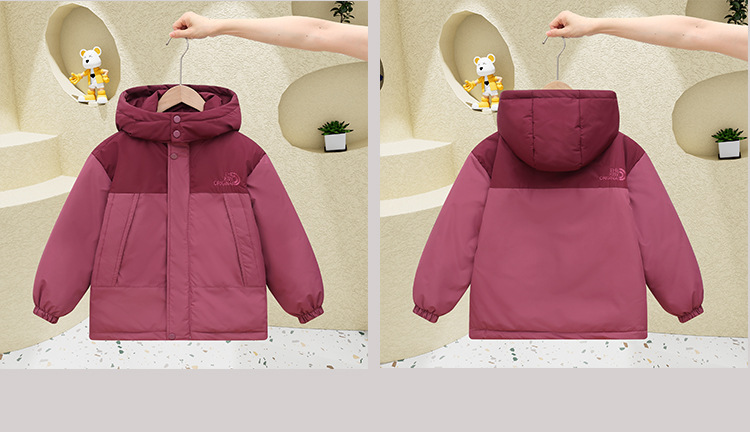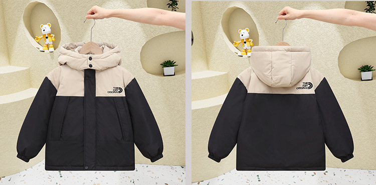 2025년 신상 아동용 다운 재킷 남아용 배색 두꺼운 아동복 겨울용 재킷 여아용 스타일리시한 후드 재킷스토어 가기