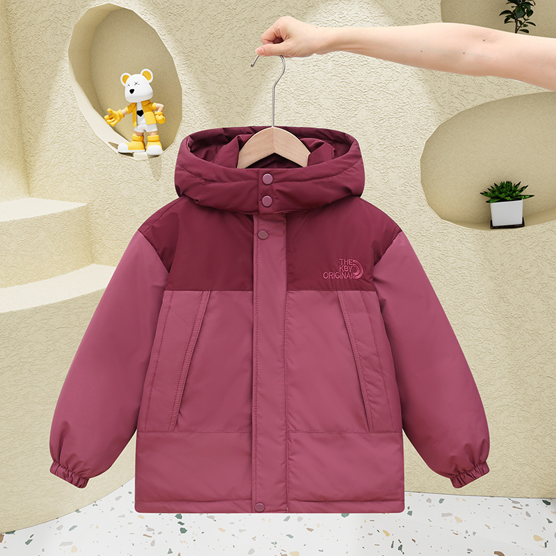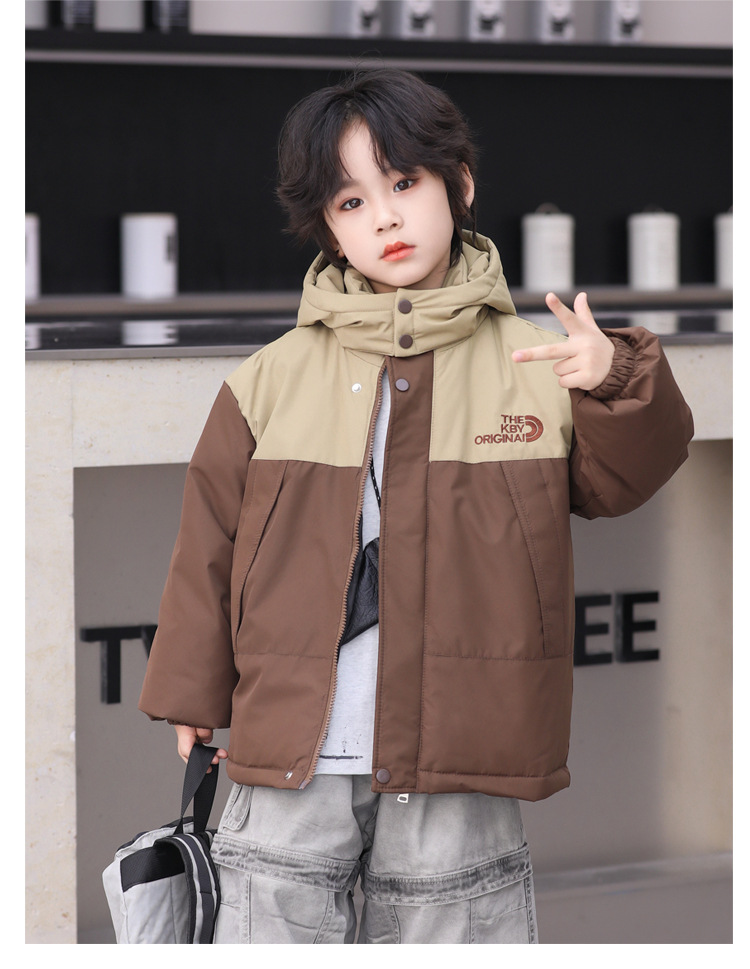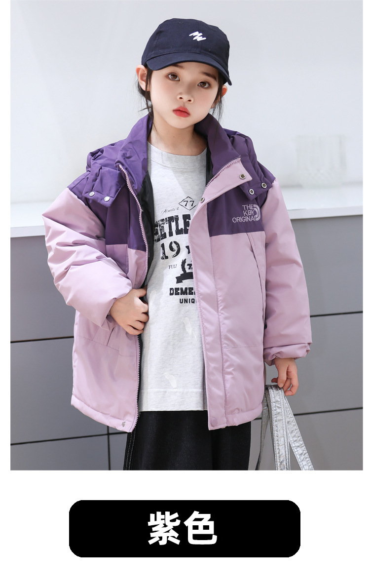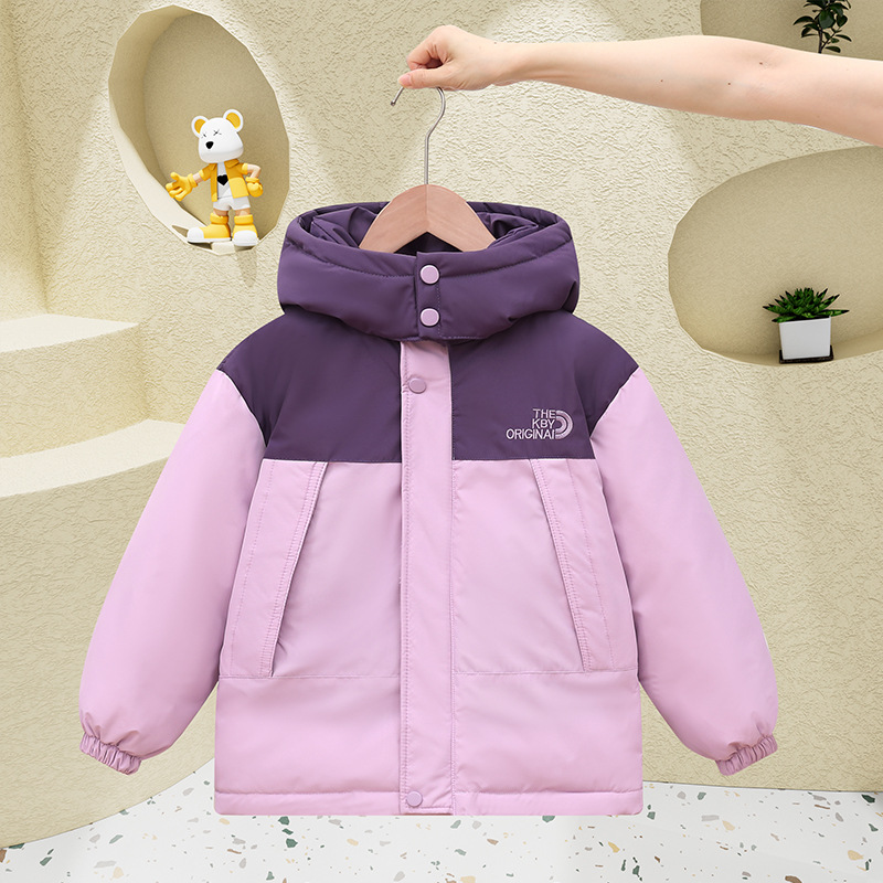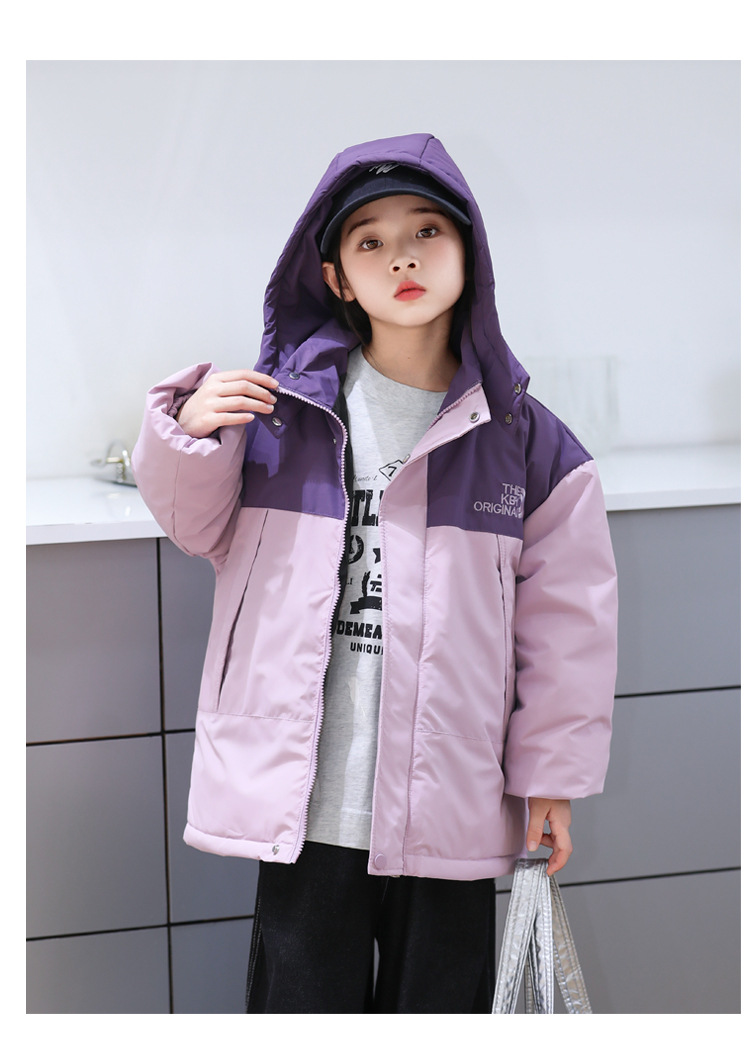2025년 신상 아동용 다운 재킷 남아용 배색 두꺼운 아동복 겨울용 재킷 여아용 스타일리시한 후드 재킷
