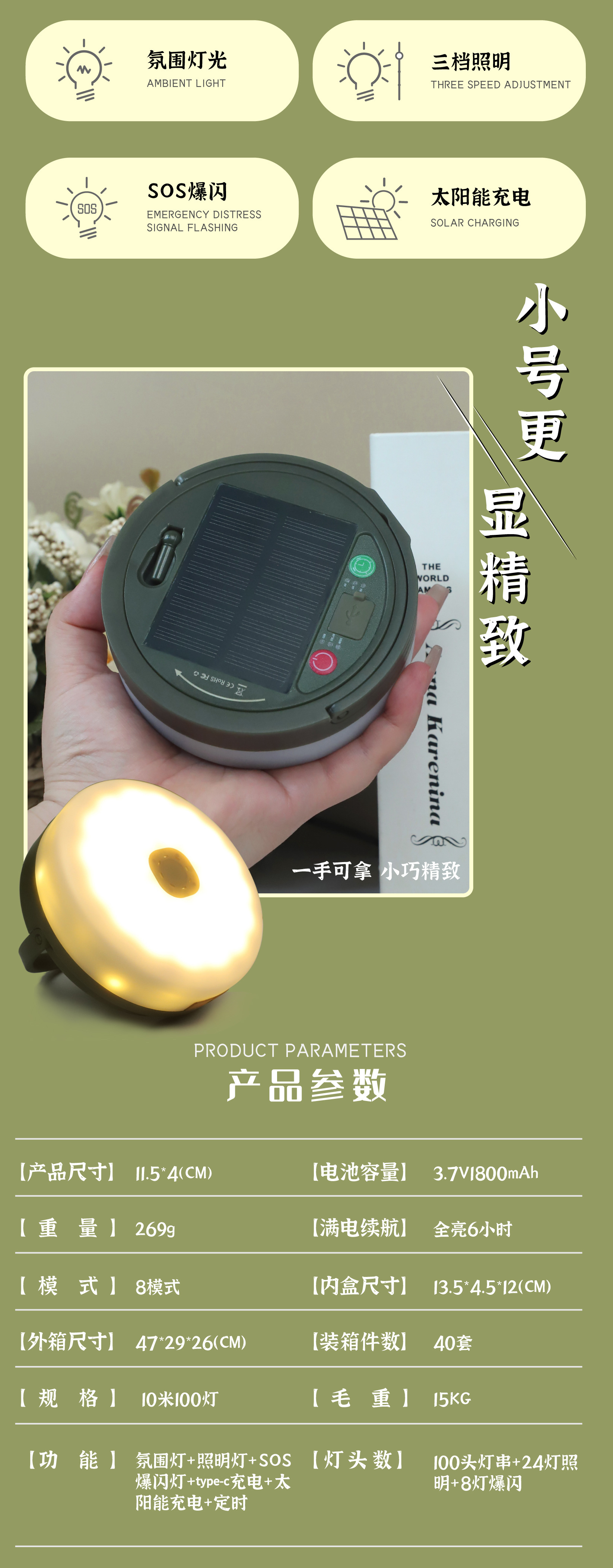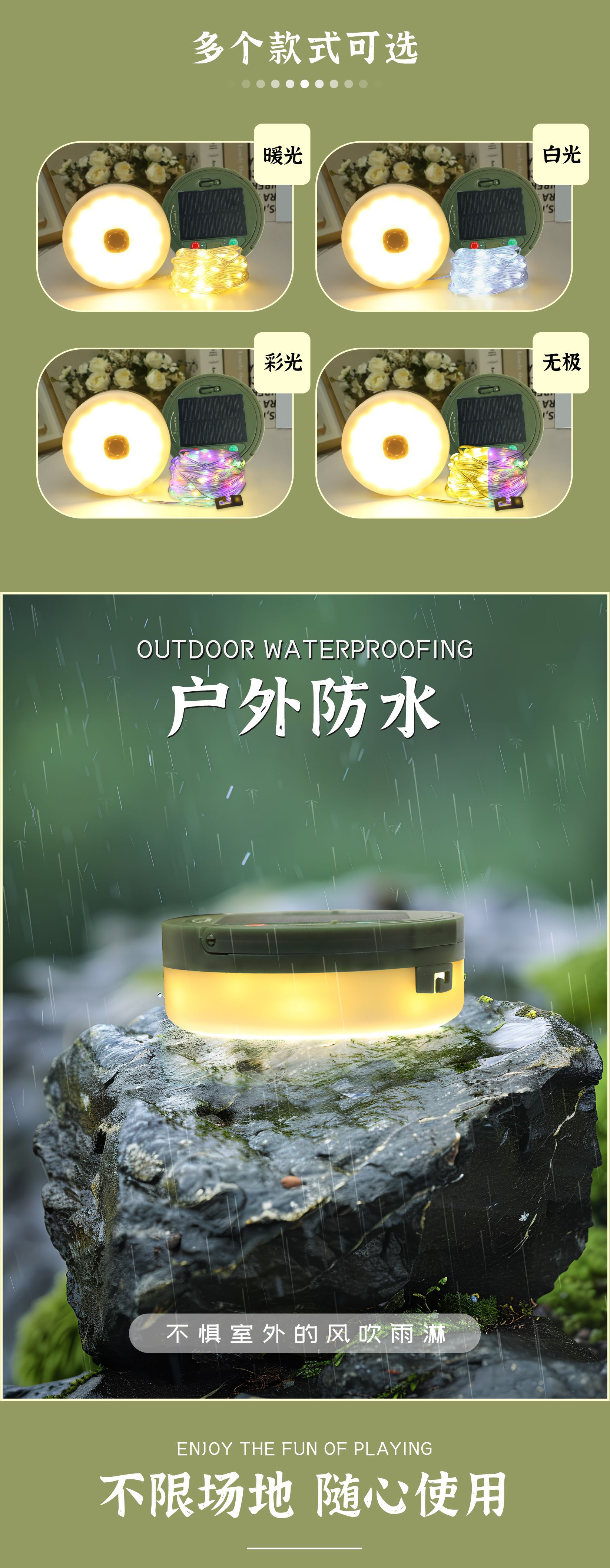 跨境LED小号太阳能灯串 照明应急灯户外防水帐篷露营灯可收纳灯串