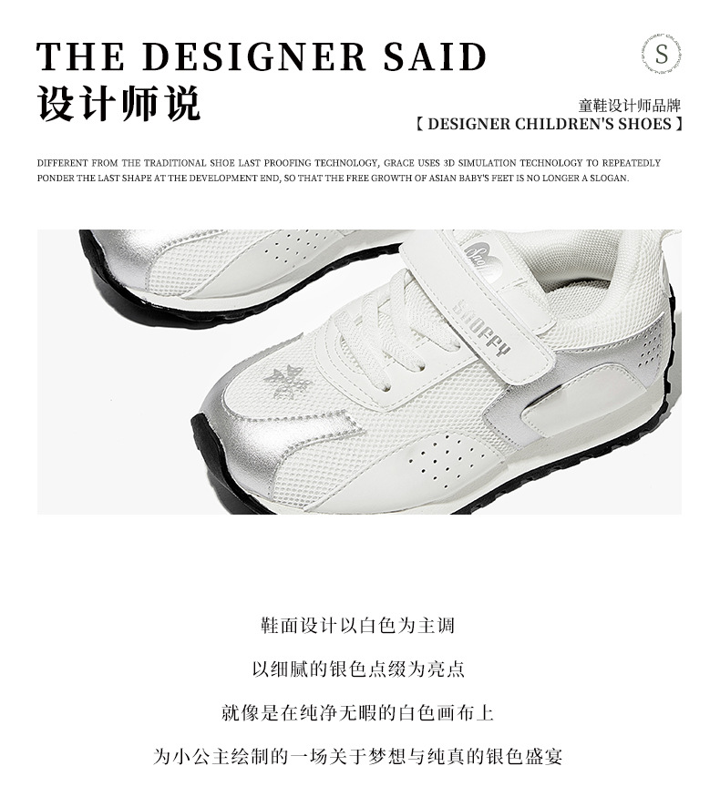 Snafy 여아 운동화 2024 가을 신작 아동 흰색 신발 초등학생 운동화