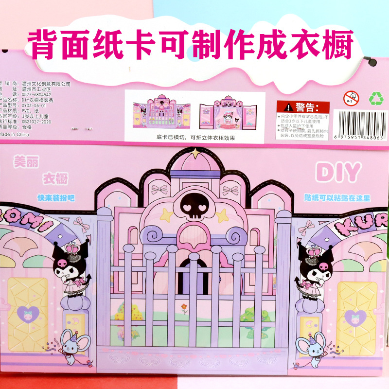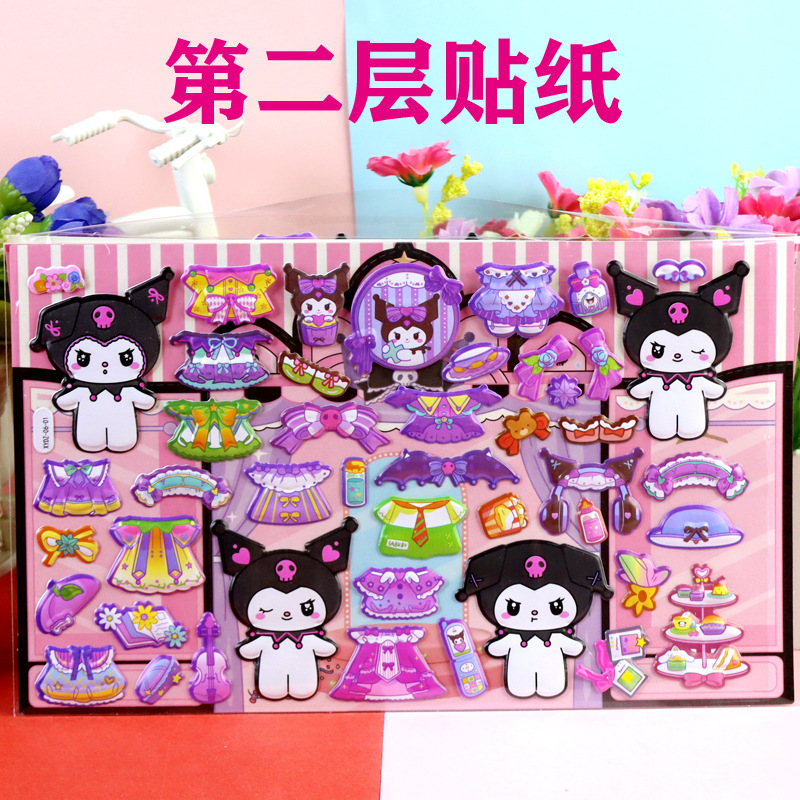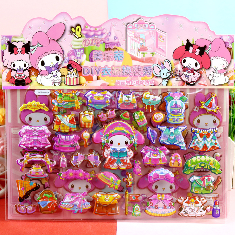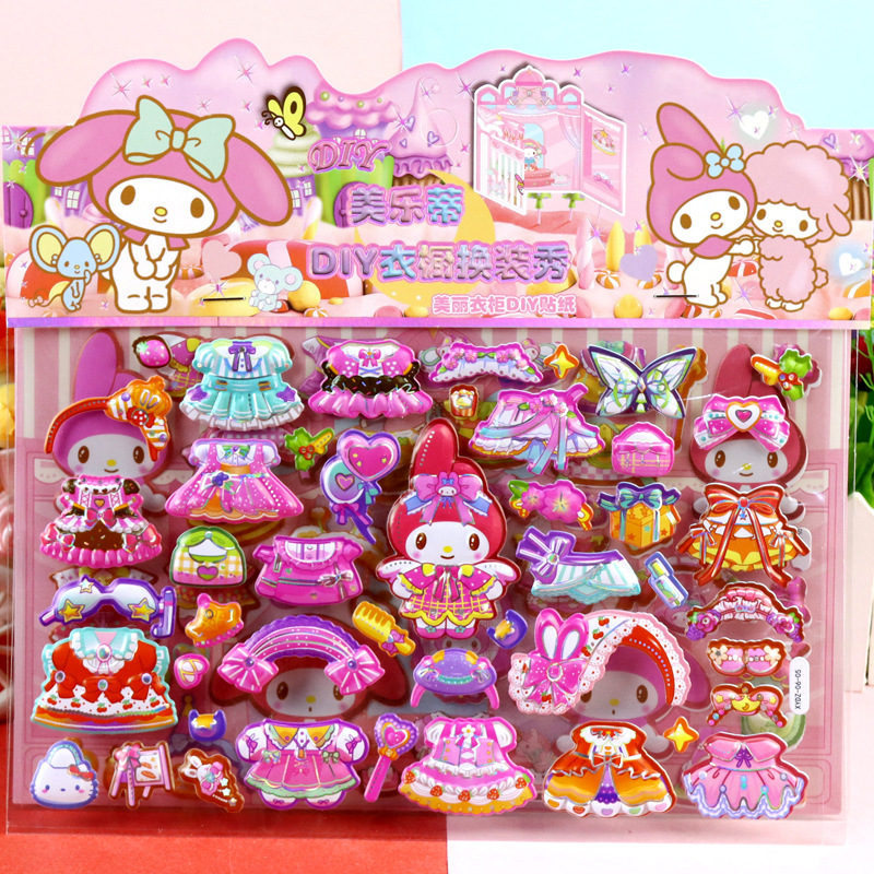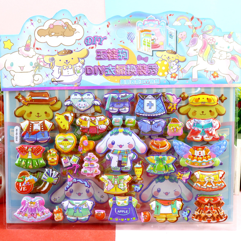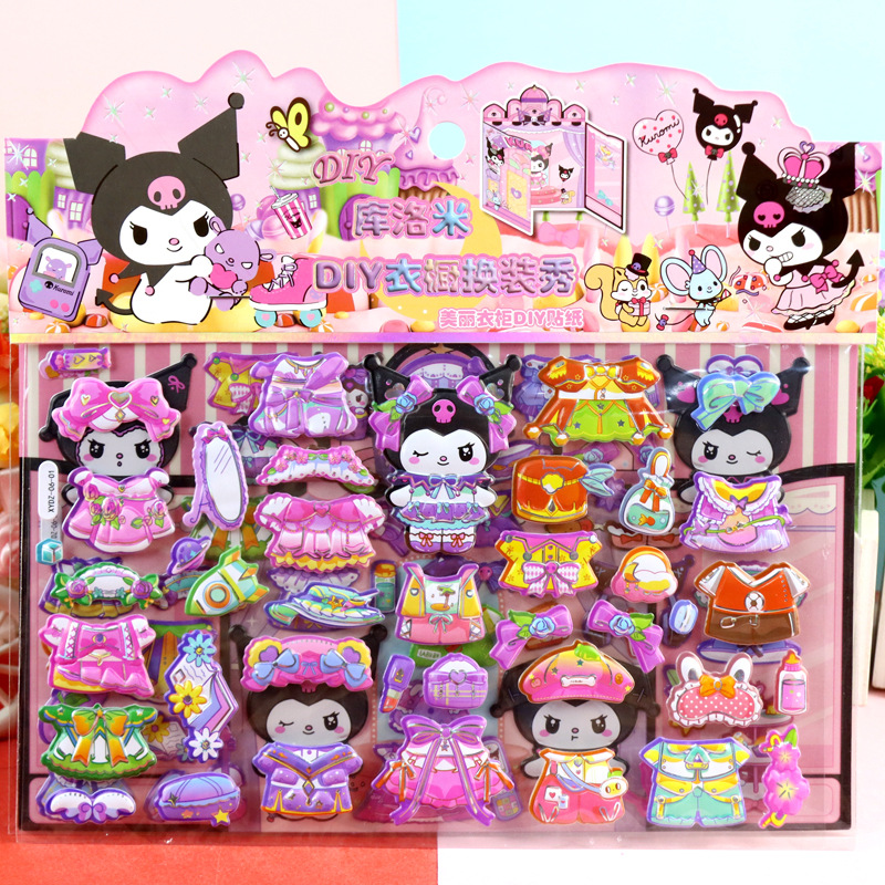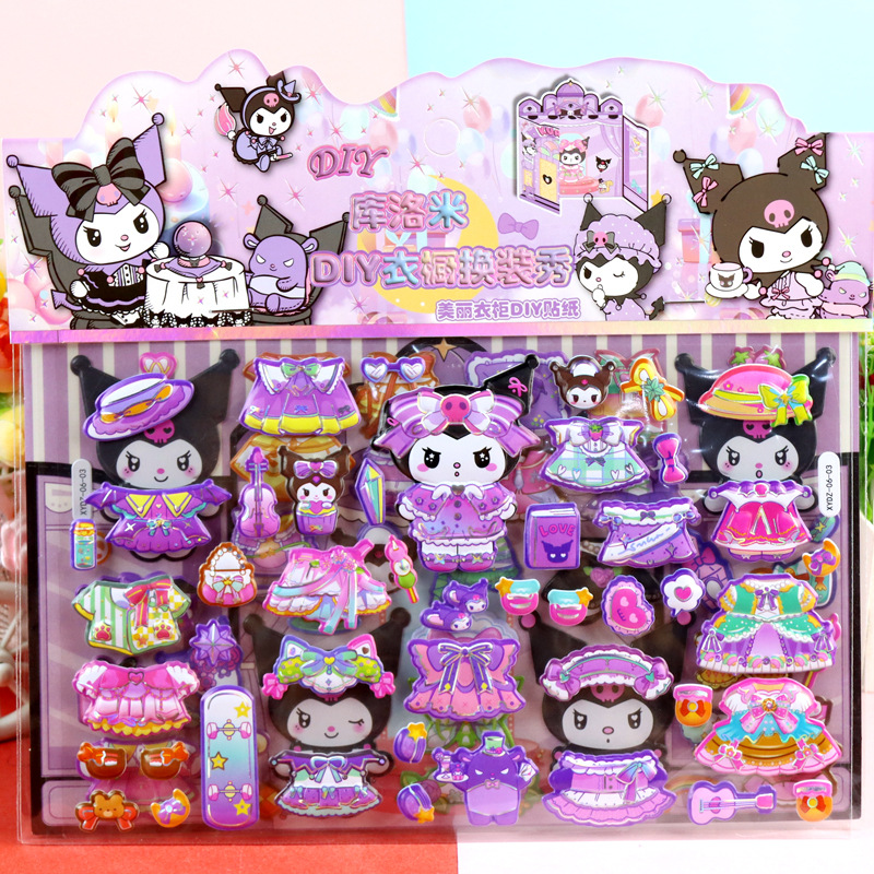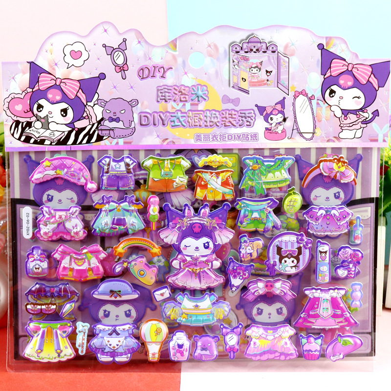 새로운 Sanrio Kulomi 옷 원피스 원피스 메를로 원피스 업 스티커 옥 구이 개 푸딩 개 당김 천 거품 스티커