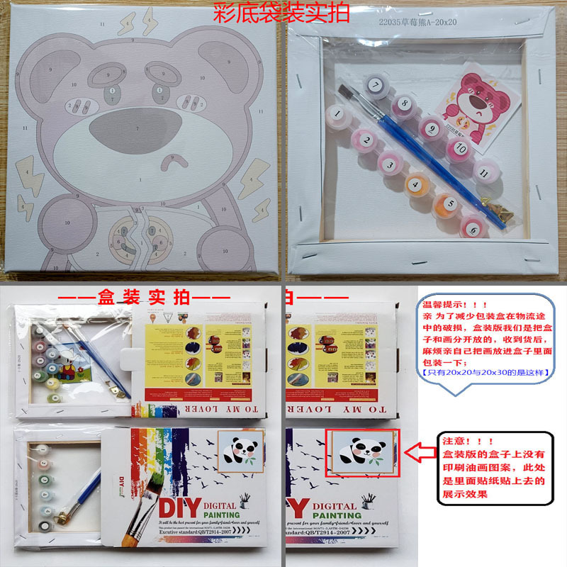 尺寸:20*20 包含:彩图,颜料,画笔,绷好实心背板