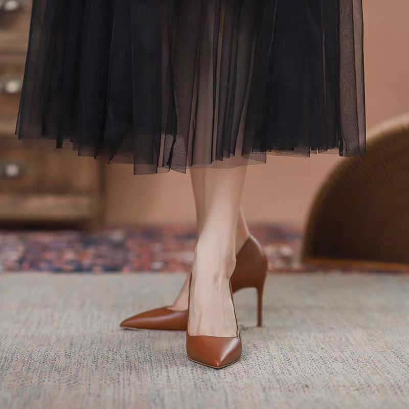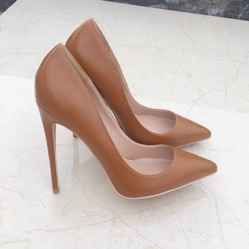 유럽과 미국의 국경 간 플러스 사이즈 다크 브라운 양 패턴 대외 무역 뾰족한 입 12cm 얇은 굽 여성 신발 작업 신발